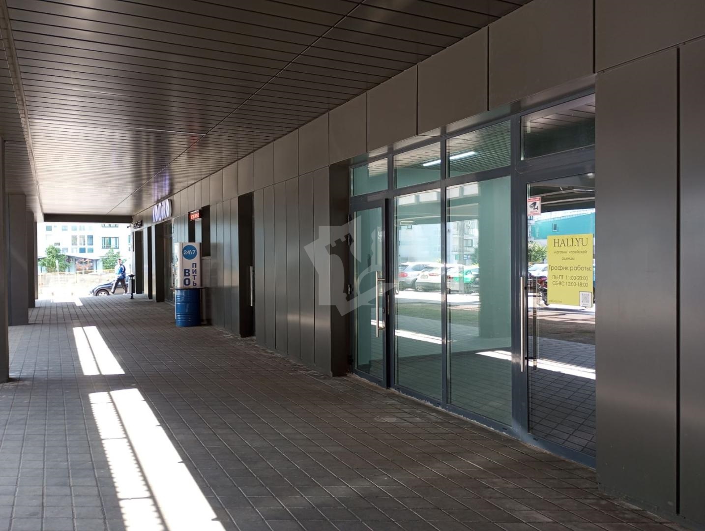 2. Два входа: один с улицы, второй — из торгового центра. Это увеличивает поток посетителей и даёт гибкость в организации пространства.