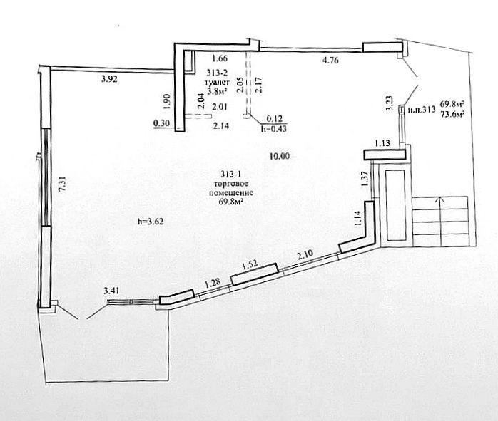 - Простор и комфорт: высота потолков — 3,62 м, площадь помещения — 73,6 м2, первый этаж.