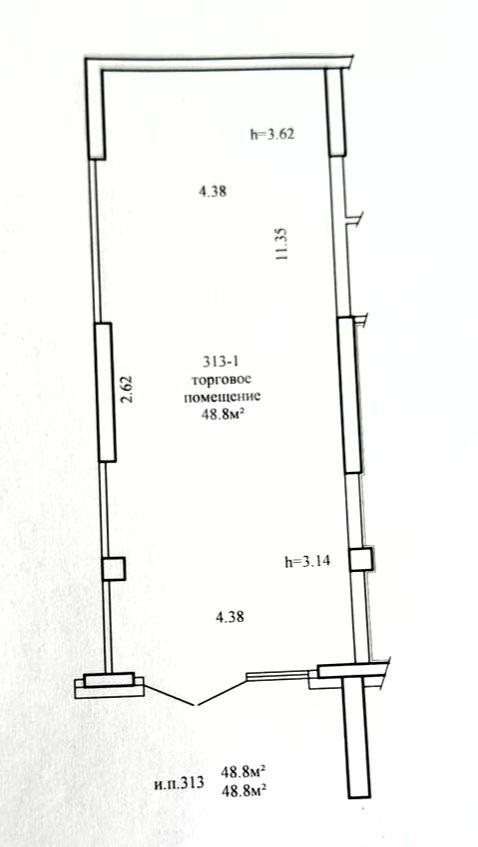 - Площадь 48,8 м2, высота потолков 3,6 м;