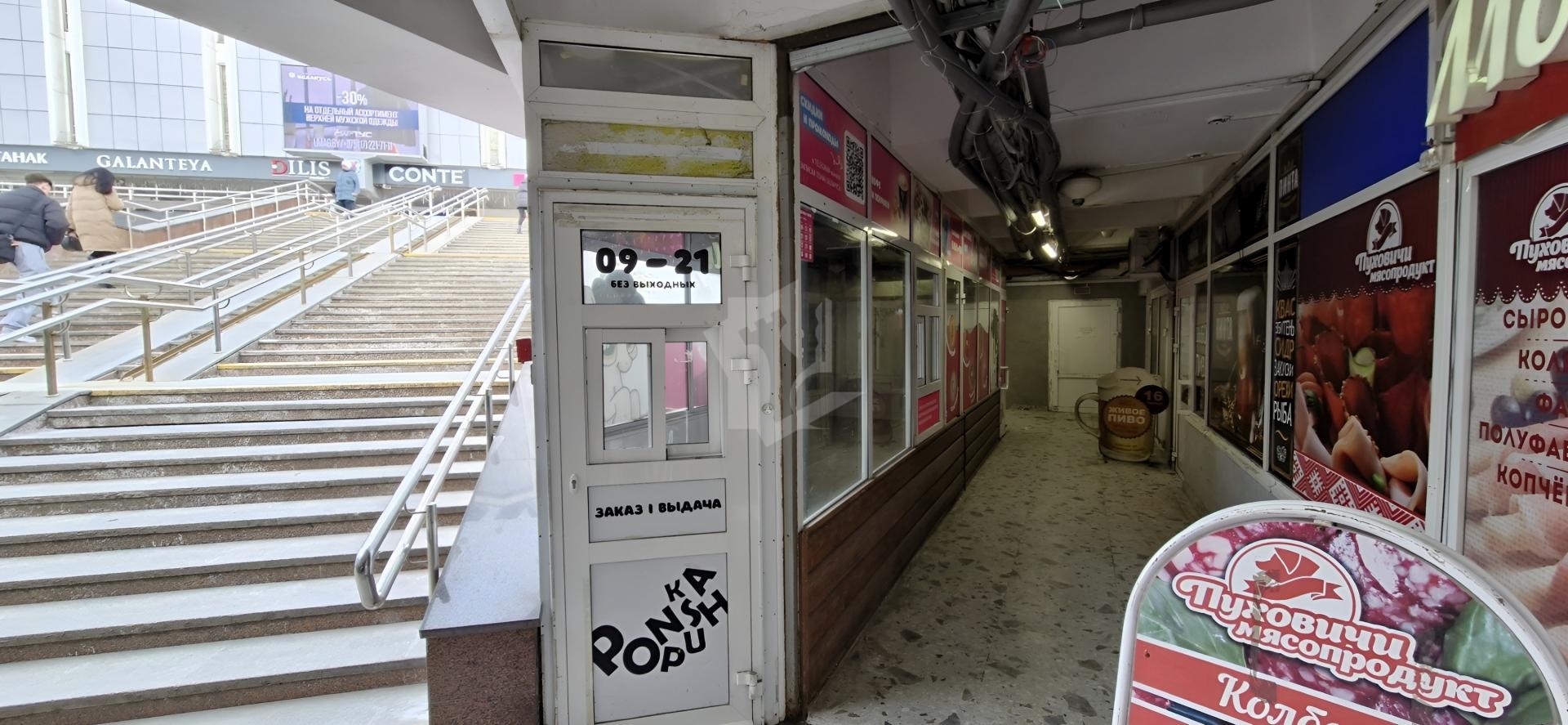 Торговое помещение 21,5 м2 в подземном переходе на ст.м. «Партизанская» на выходе к Универмагу «Беларусь». Расположение обеспечивает высокий пешеходный трафик и стабильность клиентов.