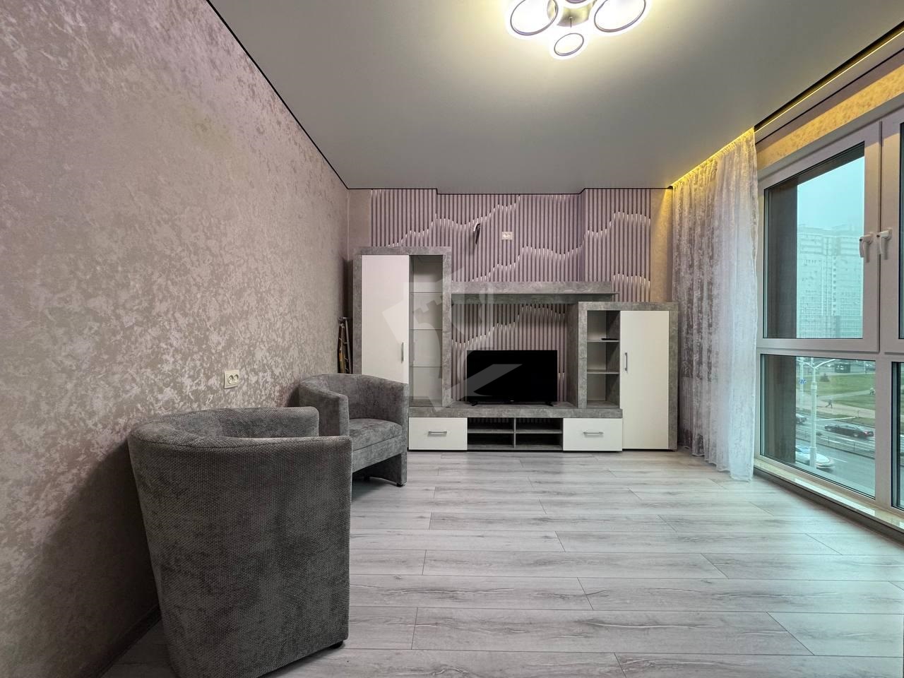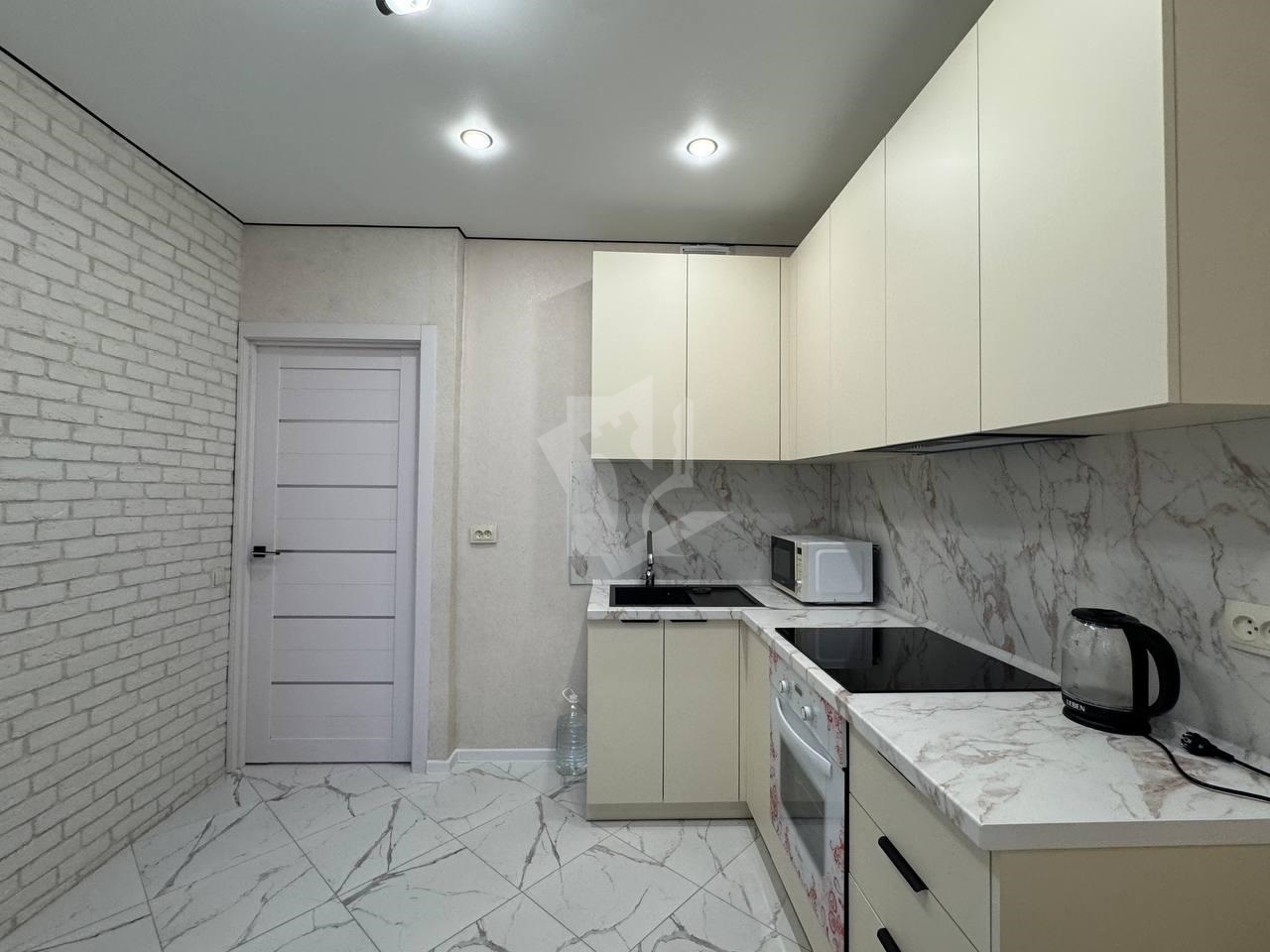 В квартире выполнен современный ремонт, квартира оборудована современной бытовой техникой(холодильник установлен, кондиционер будет установлен в зале). Просторная гостиная, выделенная кухня, спальня.
