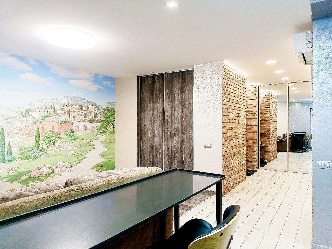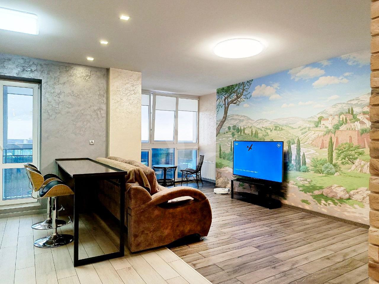 Квартира полностью обустроена для комфортной тихой жизни в крупном мегаполисе. В квартире сделан качественн!ый ремонт с дорогостоящими материалами, на стене роспись над которой работал художник несколько месяцев. Имеется вся необходимая бытовая техника: фильтр для воды, посудомоечная машина, варочная панель, духовой шкаф, вытяжка, холодильник, стиральная машина, бойлер, телевизор, кондиционер.