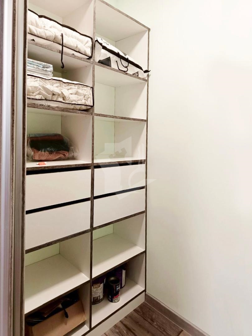 Для хранения имеется большой шкаф и оборудована гардеробная комната. Так же имеется балкон с панорамными окнами, откуда открывается потрясающий пейзаж.
