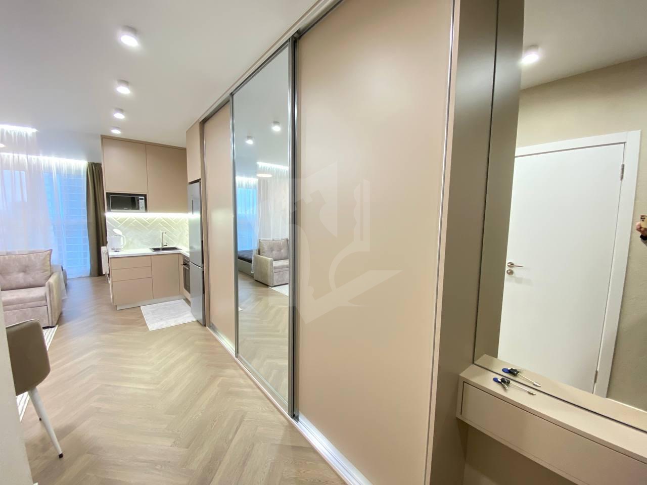 Сдается квартира-студия в Минск-Мире по ул Ж.Алферова 11 ( Брюссель ). Первое заселение. Квартира укомплектована всей необходимой мебелью и техникой для комфортного проживания (Варочная поверхность, духовой шкаф, свч-печь, холодильник, кондиционер, телевизор, два спальных места диван и кровать) Большая зона хранения в прихожей ( 3 метра) и в ванной комнате. Квартира расположена на 12 этаже , с прекрасным видом из окна. До станции метро Аэродромная 1 км. Возле дома остановка транспорта.