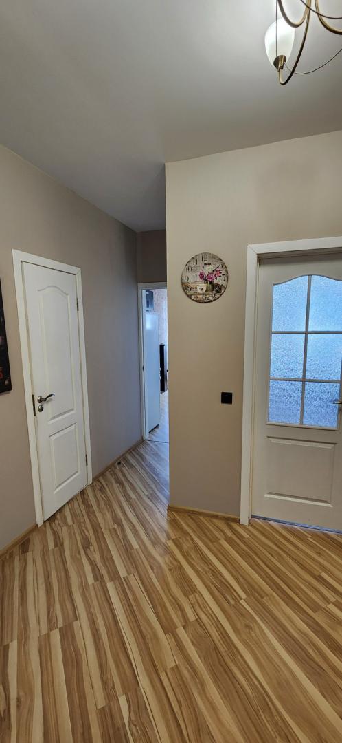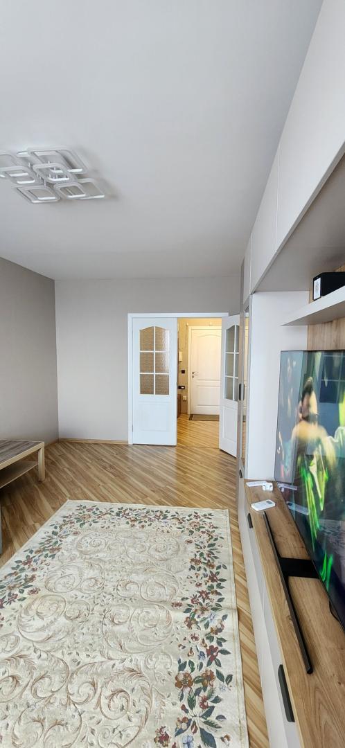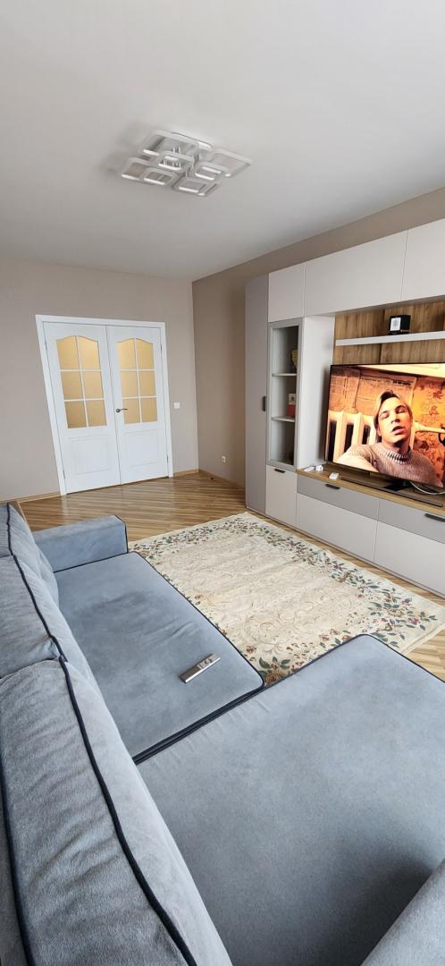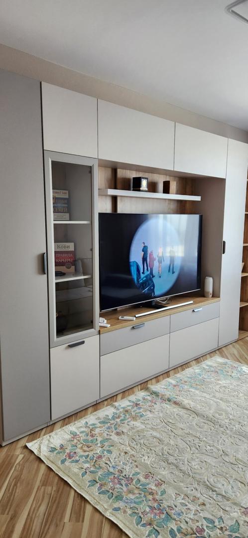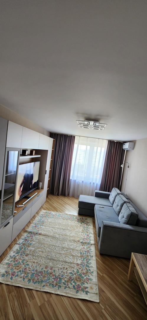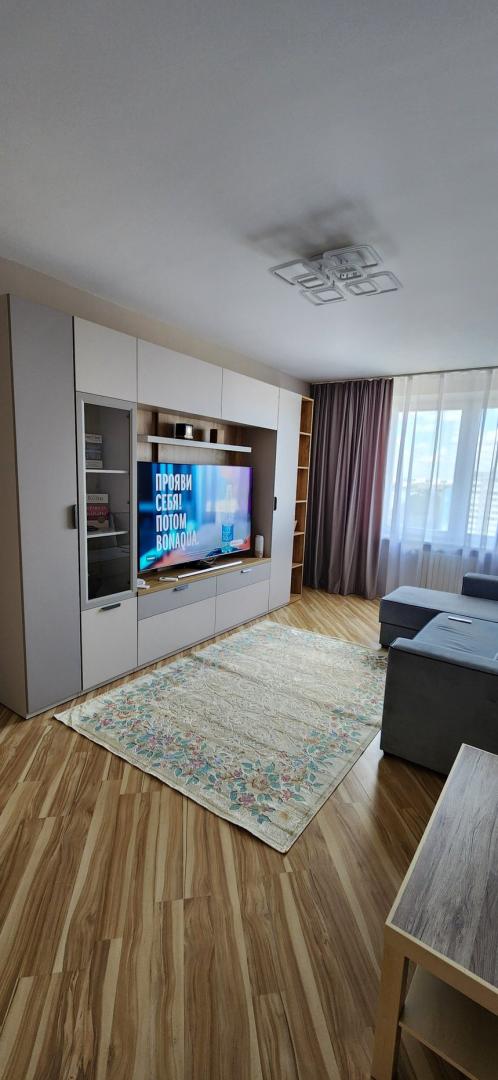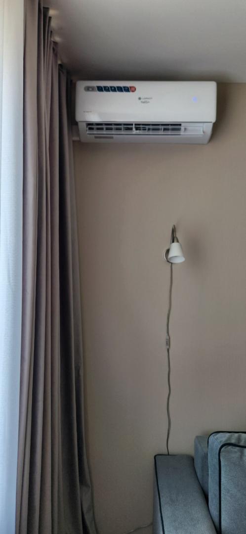 В квартире сделан косметический ремонт (перекраска всех стенок), установлена новая мебель, сплит-система инверторного типа (охлаждение, обогрев, ионизатор). Большой телевизор 65" и на кухне маленький 32". Просторная лоджия 4.9м2 с прекрасным видом с 11-го этажа на город. Квартира сдаётся в аренду впервые.