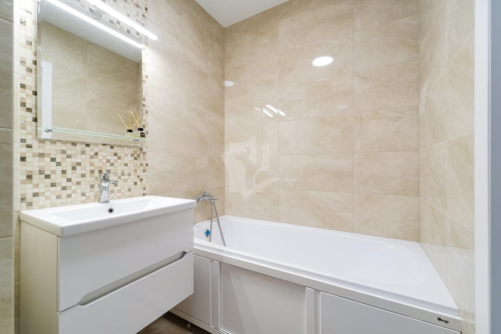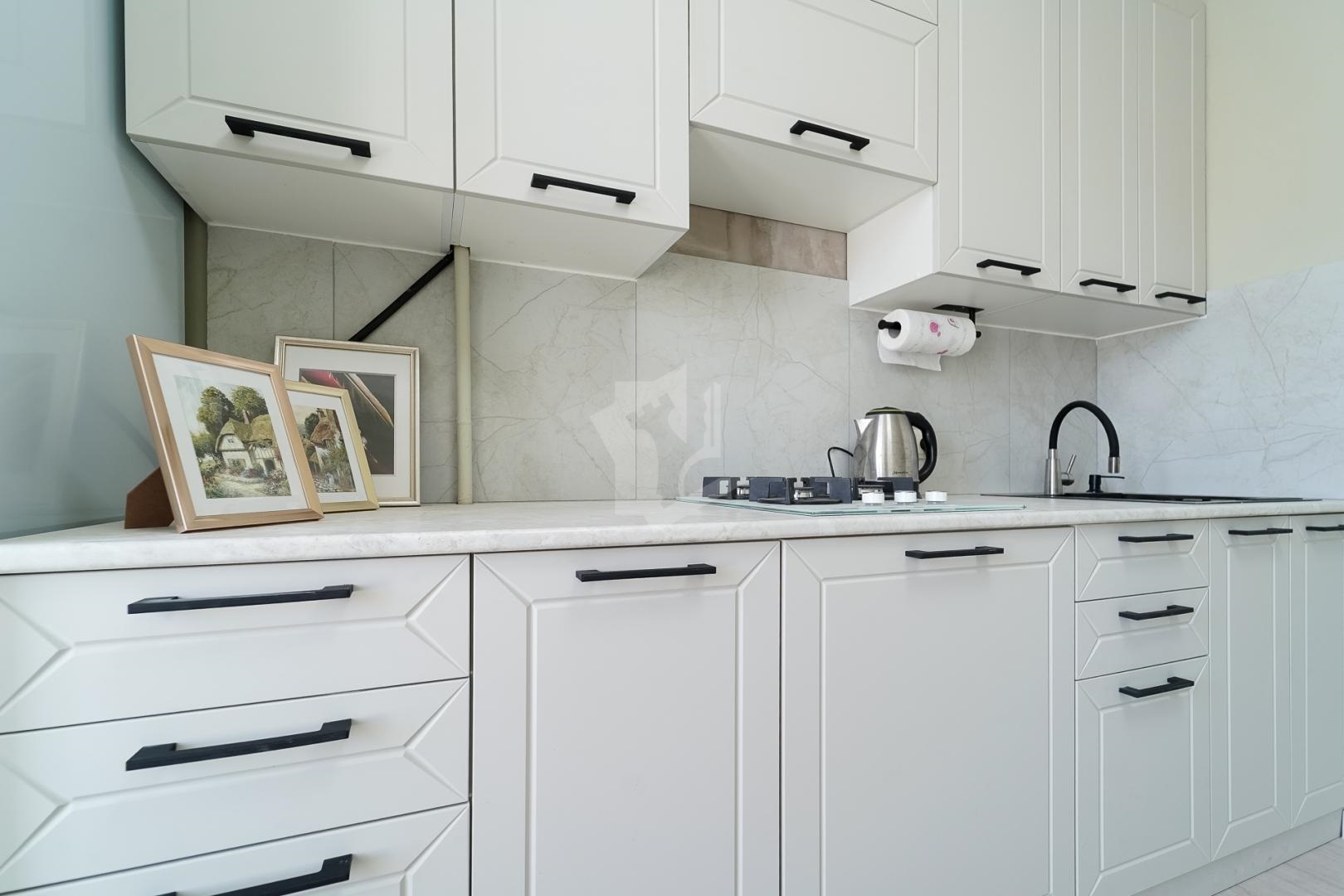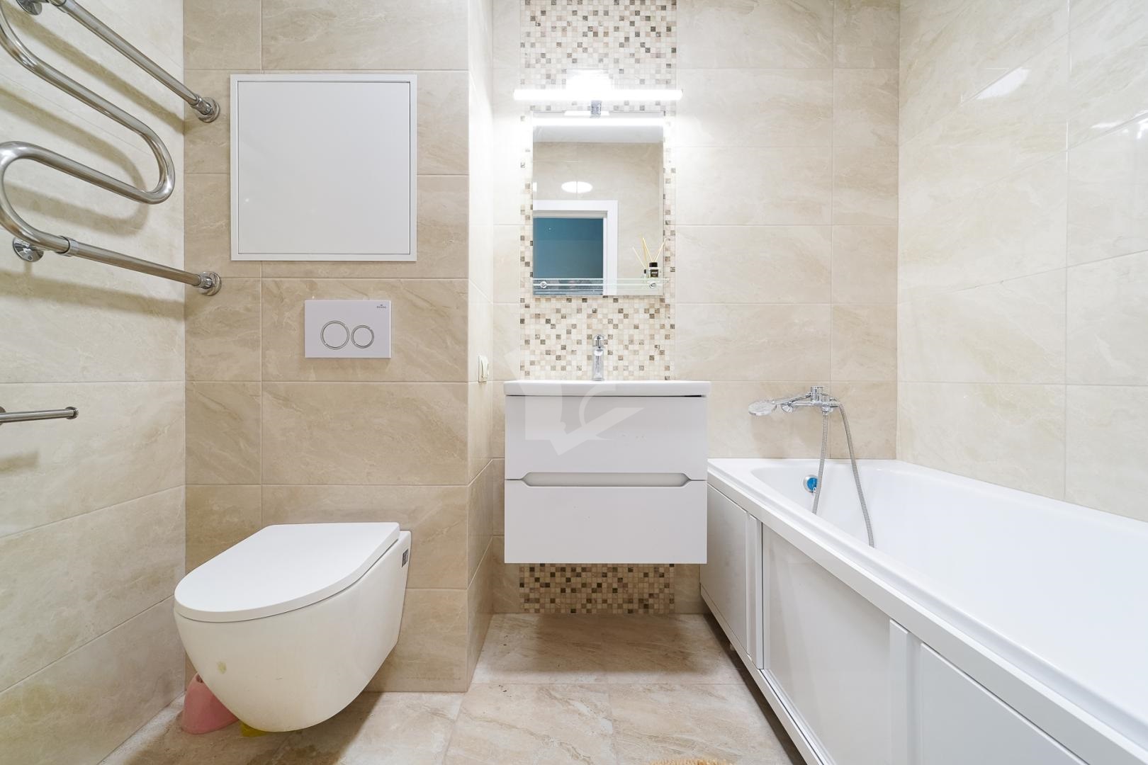 Кухня оборудована современным гарнитуром и всей необходимой техникой. Квартира укомплектована всем, что нужно для комфортного проживания. Гардеробная комната и вместительный шкаф позволят разместить все ваши вещи. Так же есть отдельная постирочная комната.