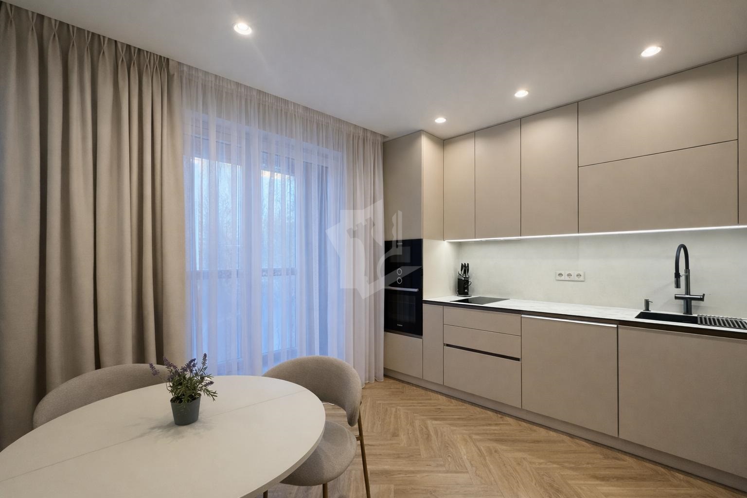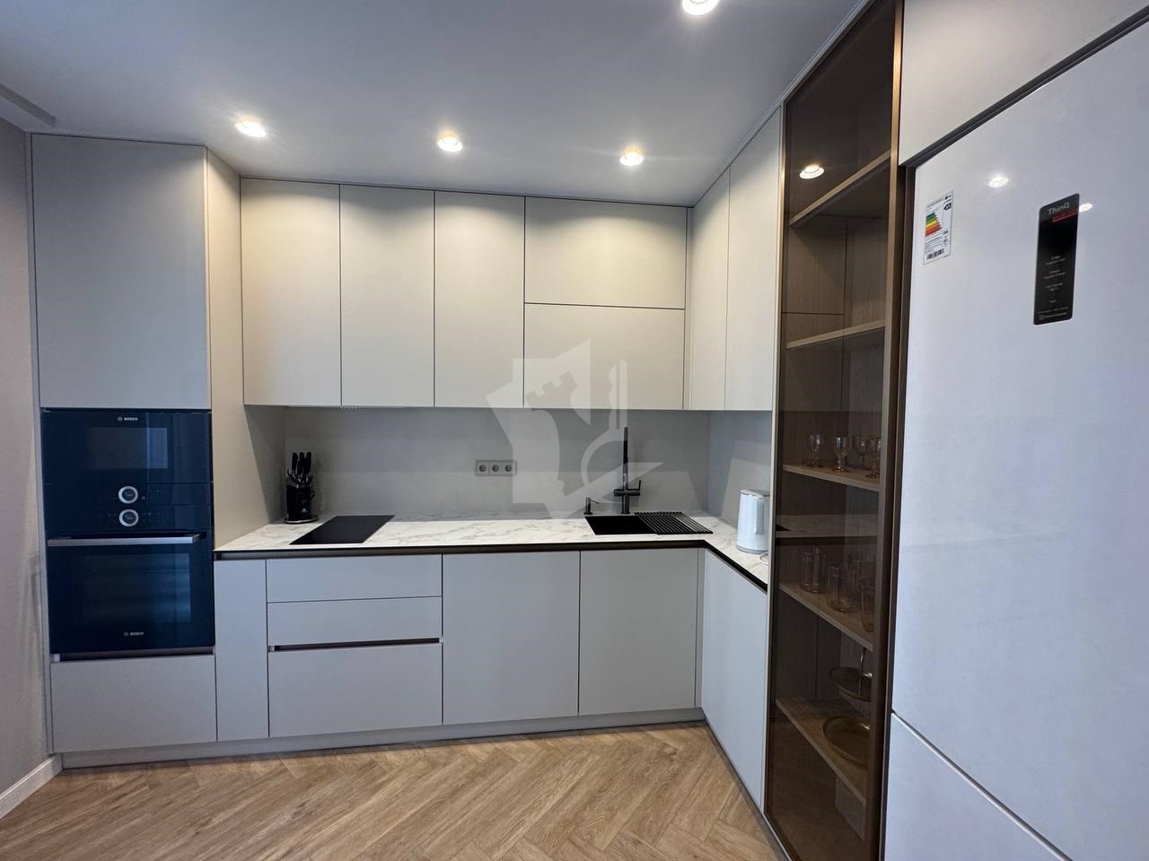 Кухня оборудована премиальной бытовой техникой: микроволновая печь и духовой шкаф Bosch, индукционная плита Siemens, электрочайник Tefal, холодильник Tefal. В ванной — стиральная и сушильная машины Beko для максимального комфорта.