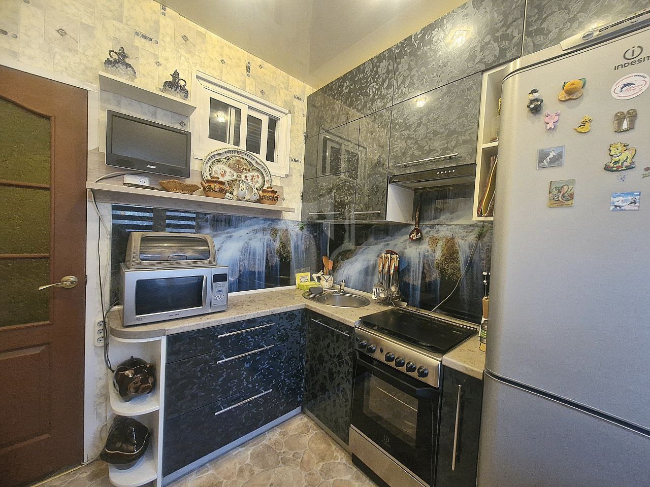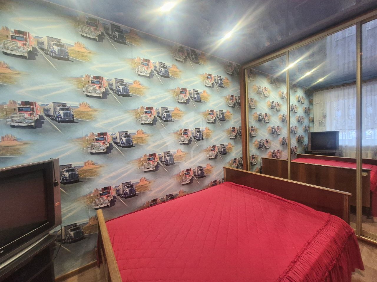 В квартире имеется всё для комфортного проживания: обустроенная кухня, холодильник, плита с духовкой, вытяжка, микроволновая печь, стиральная машина, 3 телевизора. В спальне большой вместительный шкаф-купе, двуспальная кровать. В гостиной так же много мест для хранения , диван с функцией раскладки и кресло.