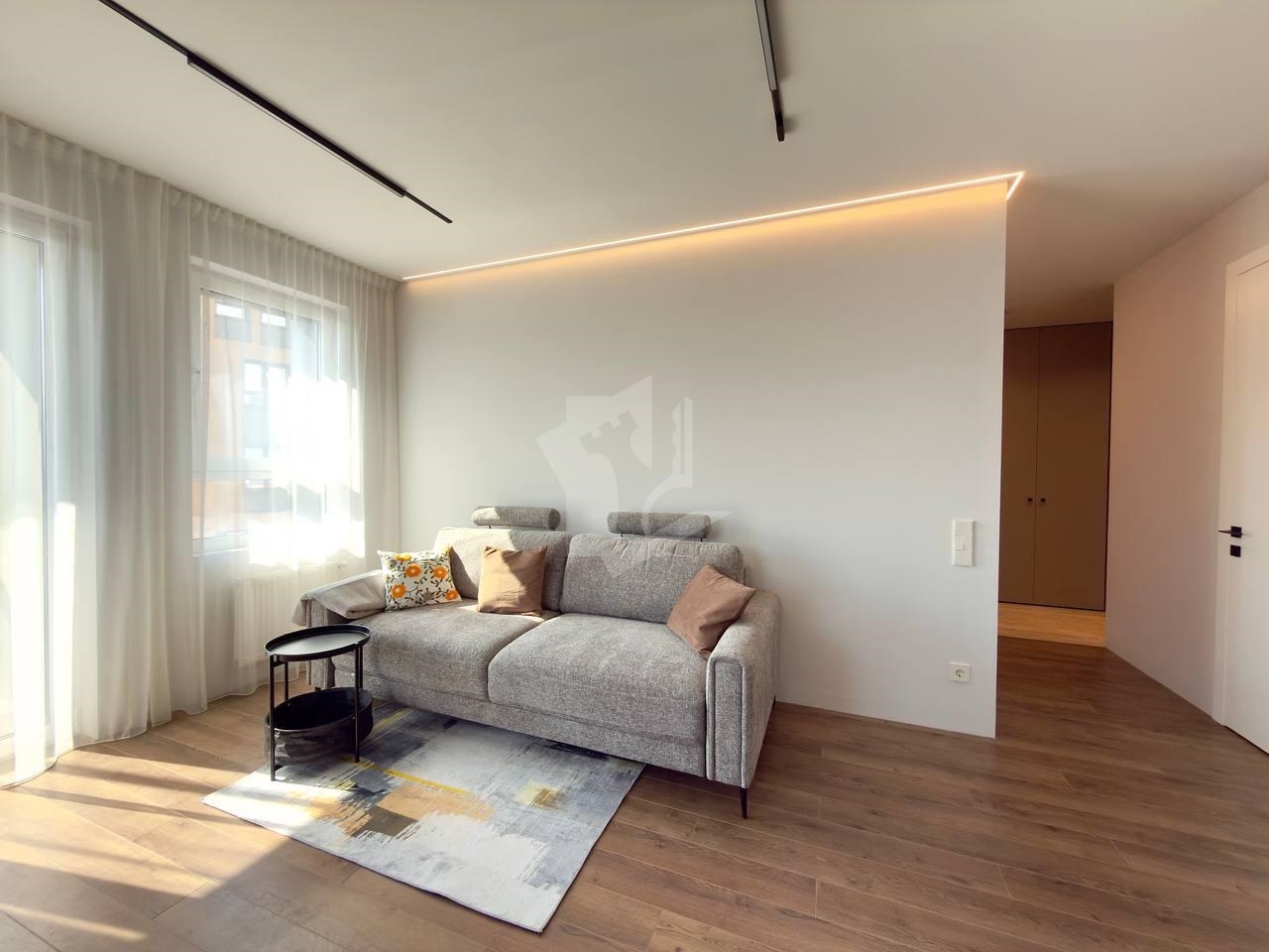 В гостиной — дизайнерский ортопедический диван (разложится в дополнительное спальное место). В спальне — удобная большая кровать.