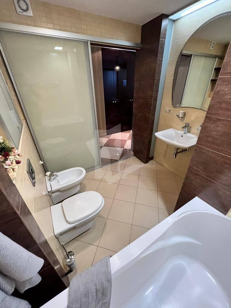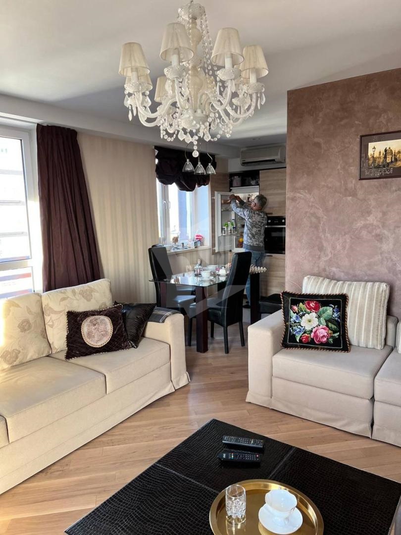 Сдается просторная (84кв.м.) двухкомнатная квартира на 18 этаже. Полностью укомплектована всей необходимой мебелью и техникой для комфортного проживания. 2 санузла, кондиционер в каждой комнате. Есть машиноместо.