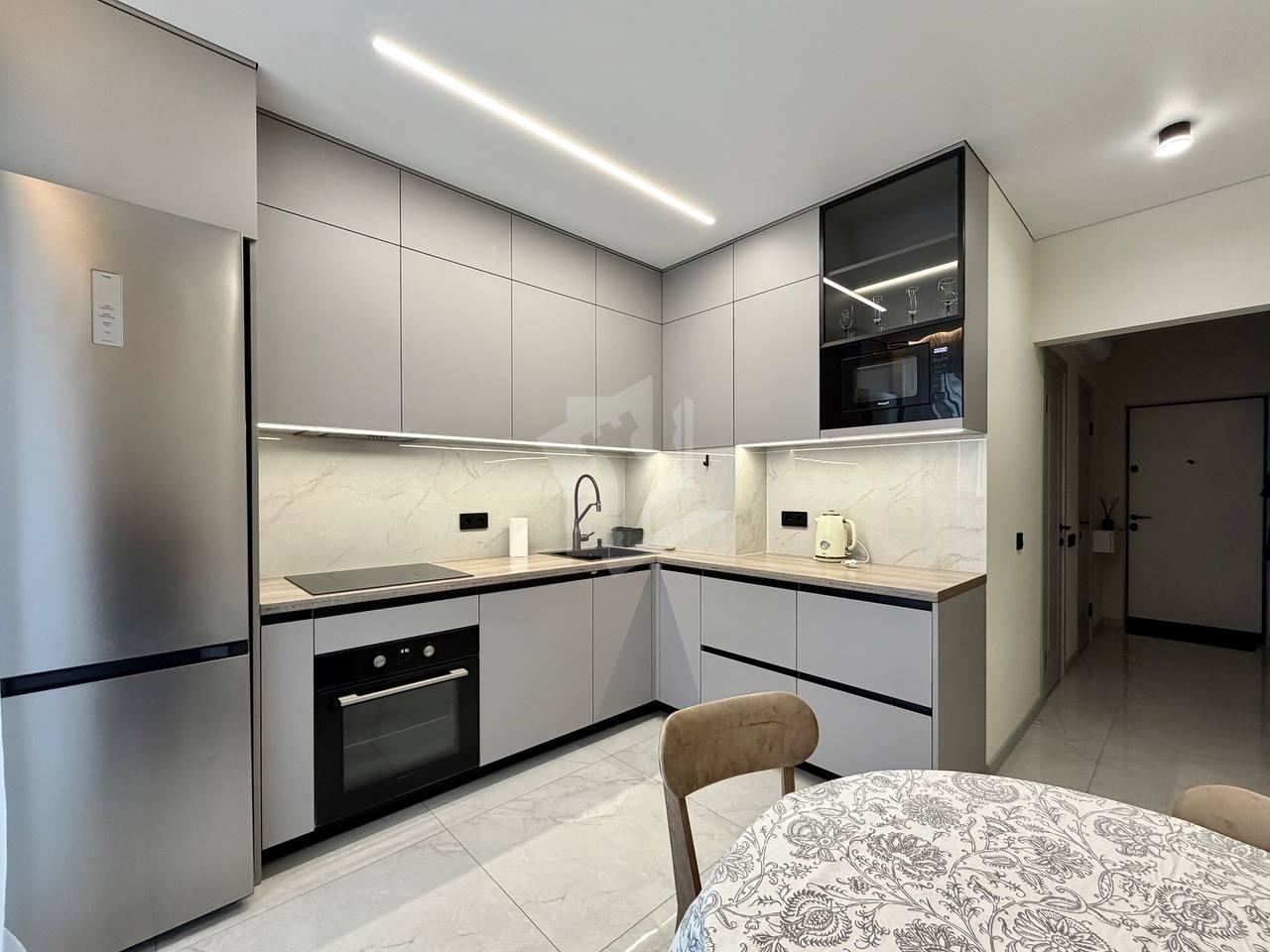 В квартире есть все необходимое для комфортного проживания. В наличии также посудомоечная машина, проточный водонагреватель, кондиционер и др