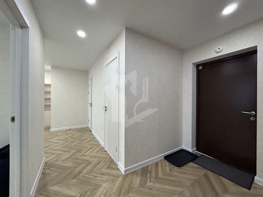 Интерьер: Выполнен в светлых, натуральных тонах, что создает атмосферу простора и спокойствия. Уложен качественный ламинат, стены оформлены стильными обоями и декоративным камнем.