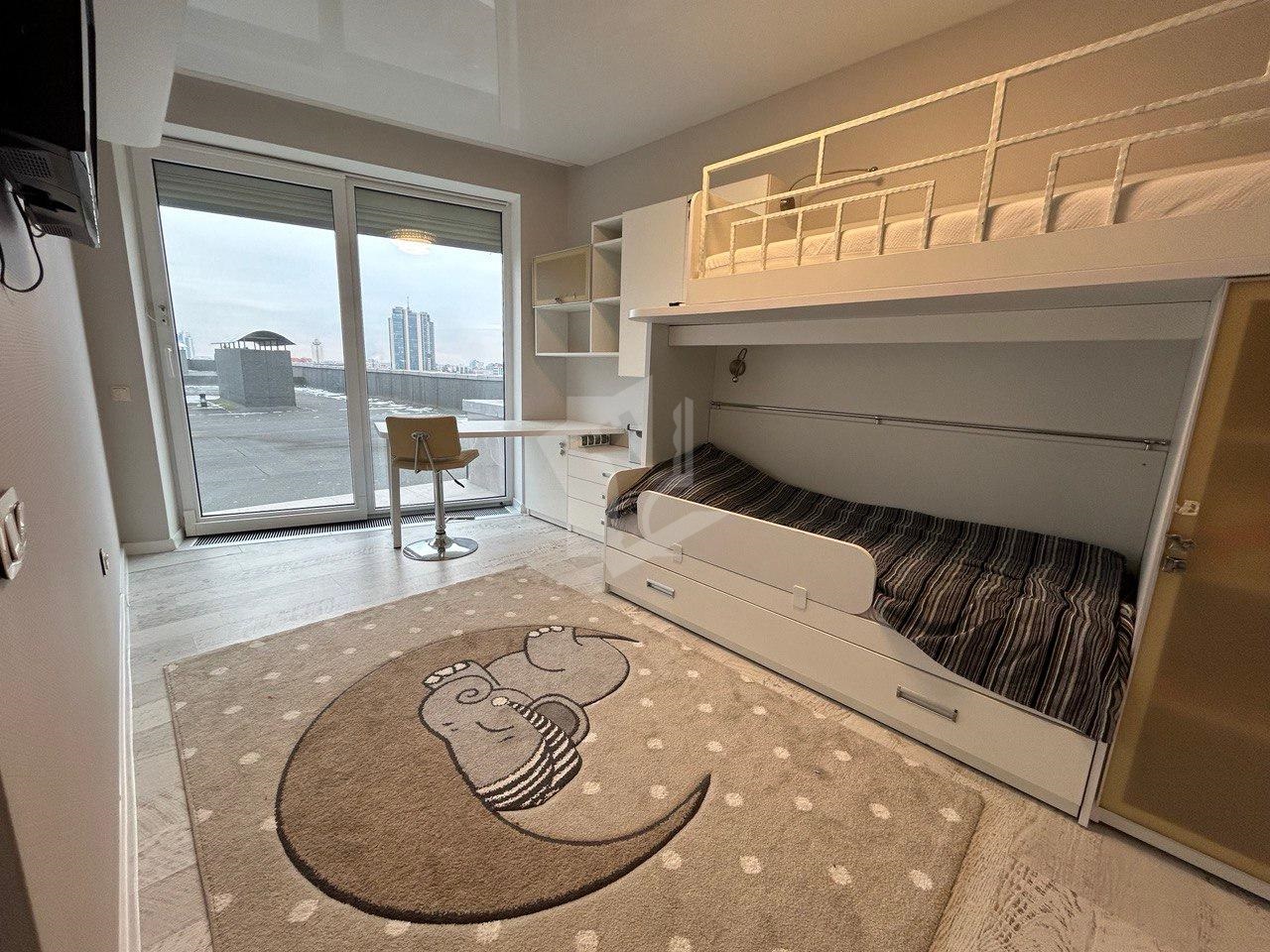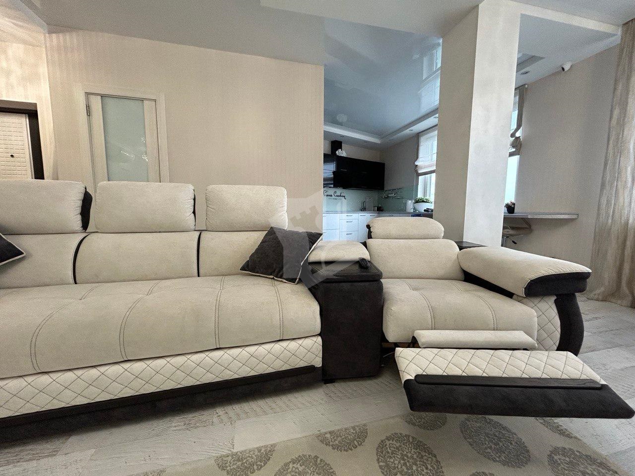 Общая площадь квартиры более 83 м2, выполнен современный ремонт с использованием дорогостоящих материалов. Гостиная совмещена с кухней, отдельная спальня и детская комната с выходом на террасу (крышу), раздельный сан.узел.
