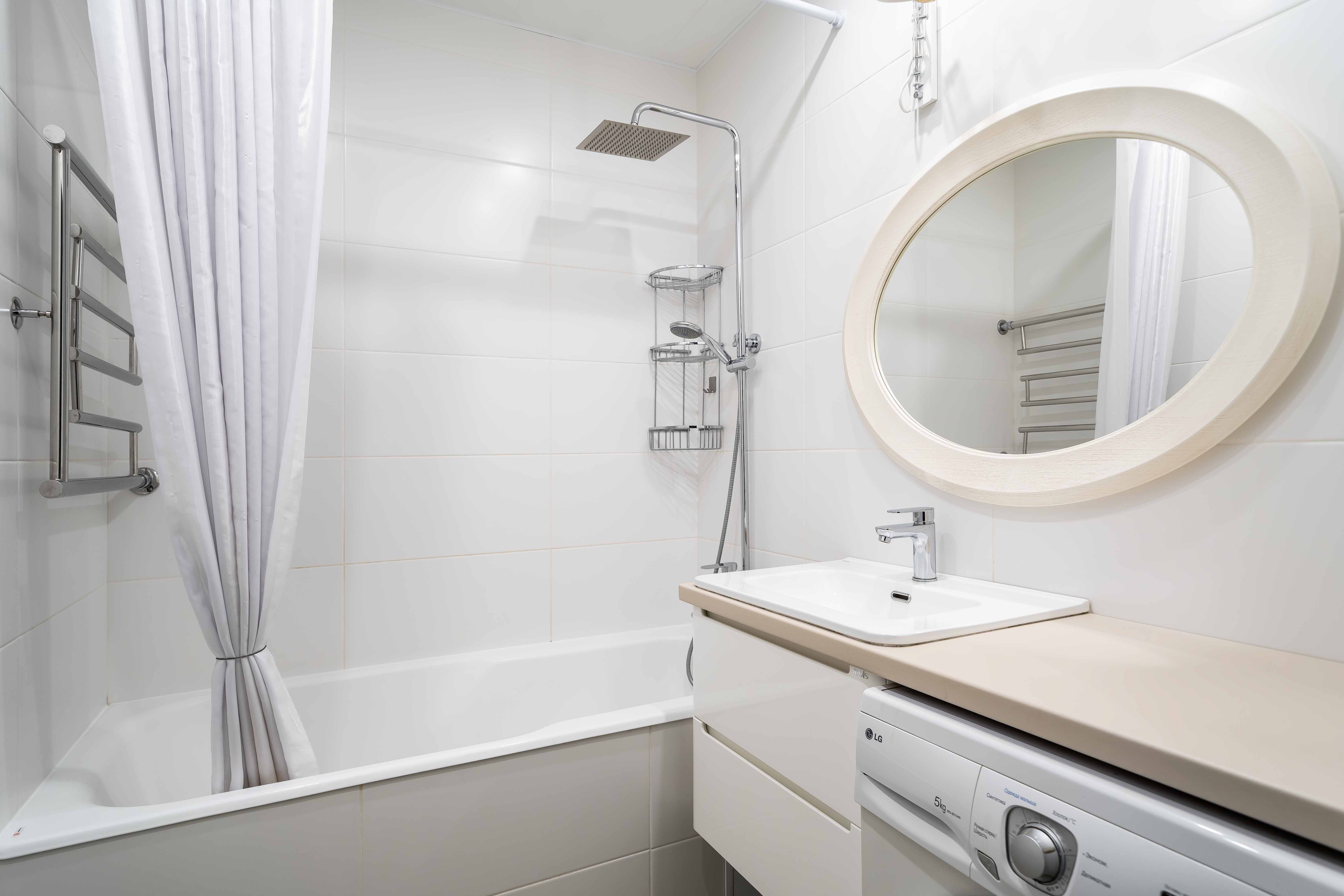 На кухне установлены: варочная панель, духовой шкаф, посудомойка, микроволновая печь, холодильник.