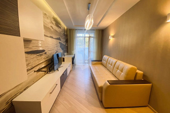 Межкомнатные двери, кухонный стол, стулья, мебель в зале - массив. В зале расположен раскладной диван Puff. Квартира полностью оборудована техникой (Телевизор SONY (55*), варочная панель Electrolux, встроенный холодильник Liebher, духовой шкаф и стиральная машина Bosch, микроволновая печь, чайник. Радиаторы с терморегуляторами. Зимой квартира теплая, летом - не жарко.