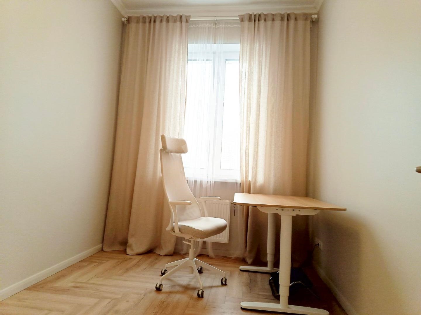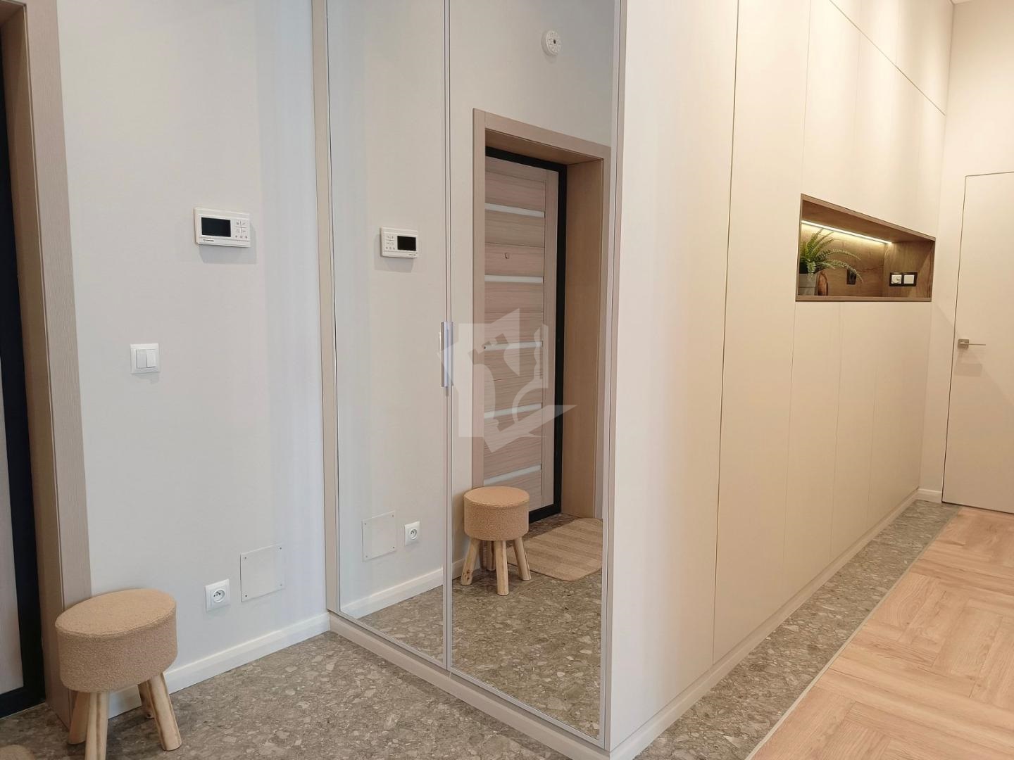 Сдается на длительный срок дизайнерская 3-х комнатная квартира со стильным дорогостоящим ремонтом. Квартира укомплектованна всем необходимым для комфортного проживания: мебель, удобные системы хранения, техника высокого класса, полноразмерные посудомоечная машина, стиральная и сушильные машины, кондиционеры в каждой комнате с датчиками движения и функцией очистки воздуха. В спальне отдельная гардеробная с удобной системой хранения и высокая кровать с ортопедический матрасом, так же есть туалетный столик. В кабинете большой рабочий стол с системой регулировки и ортопедический стул.
