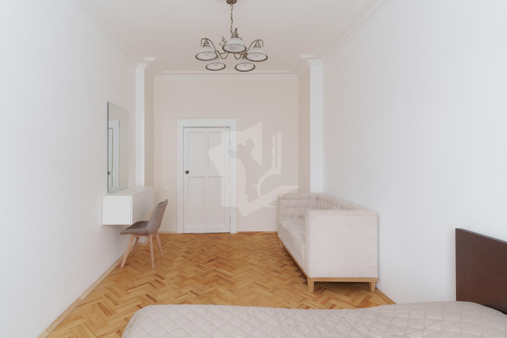 Просторная трехкомнатная квартира в сердце столицы. Кирпичный дом расположен недалеко от площади Победы.