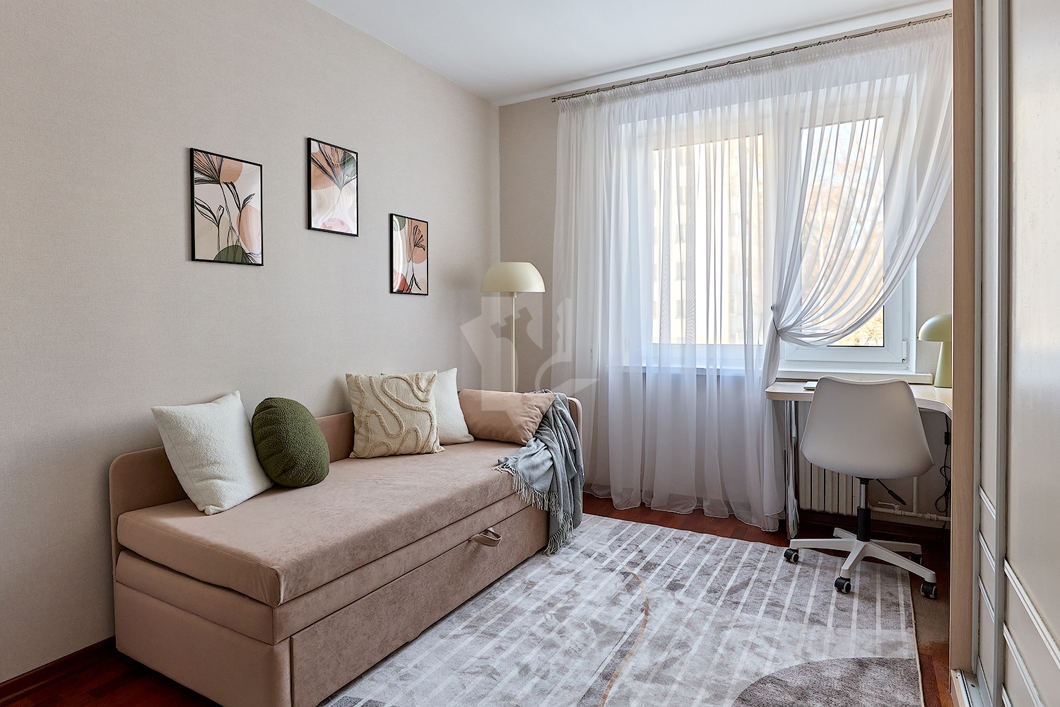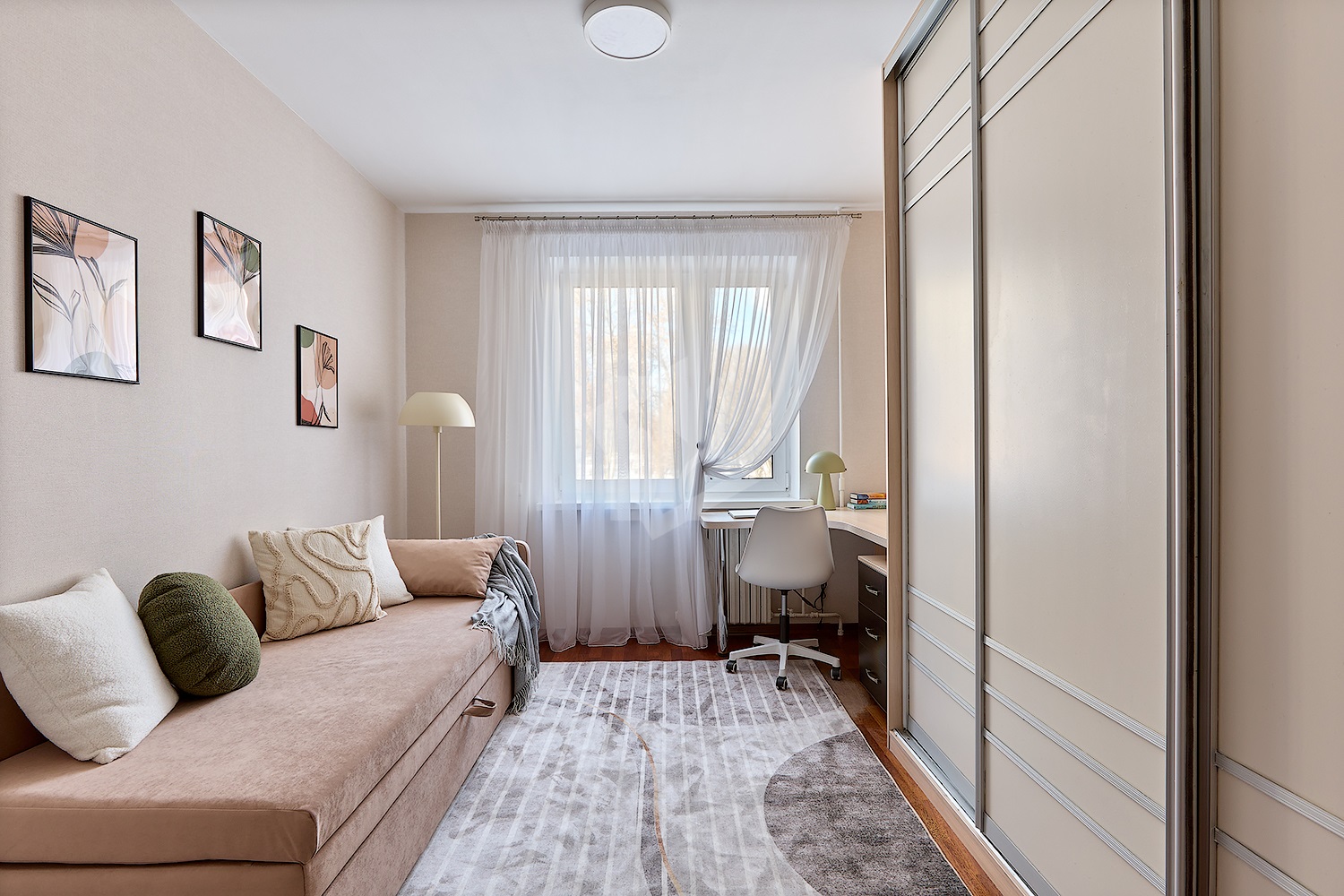 • Детская: шкаф-купе + рабочее место у окна.