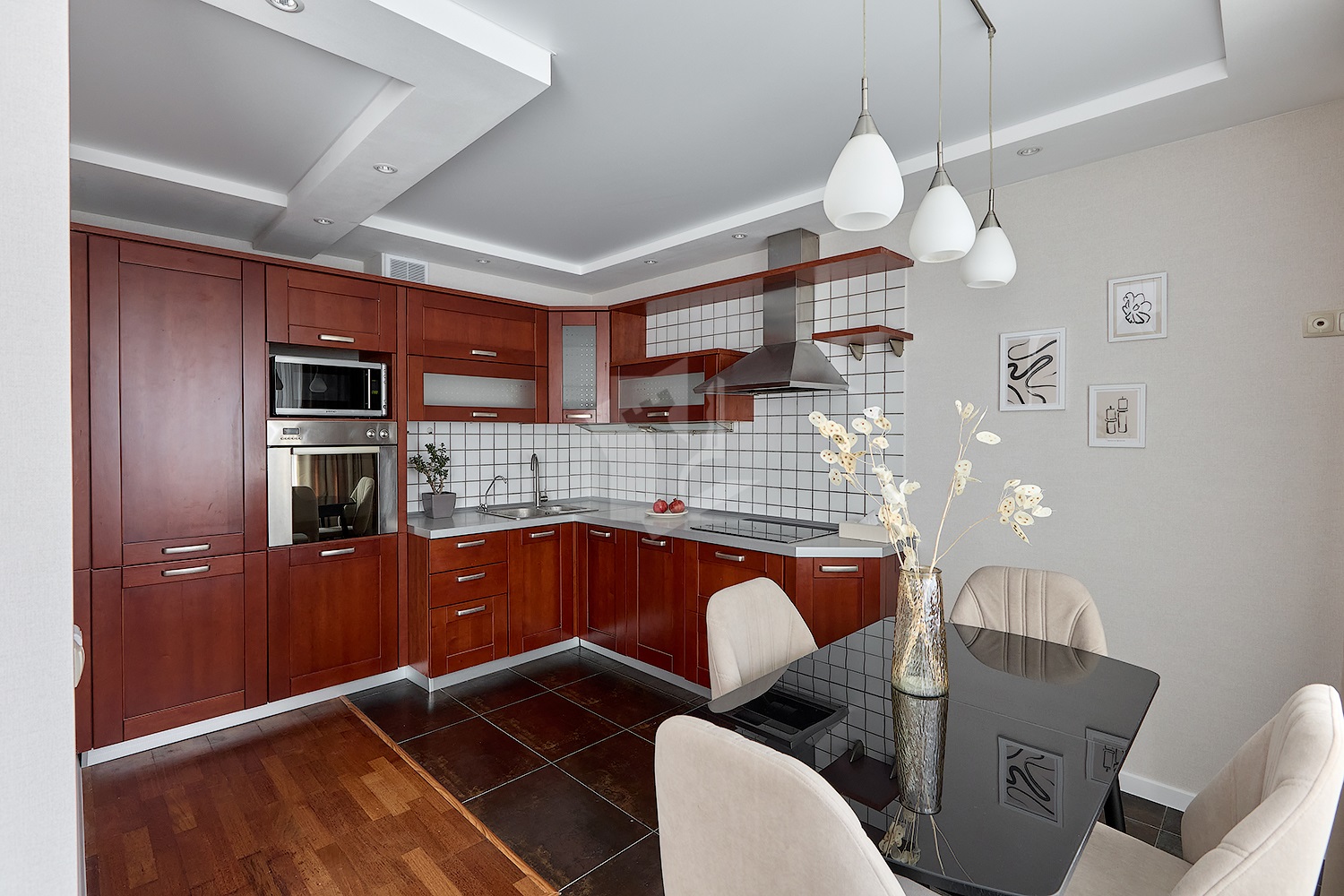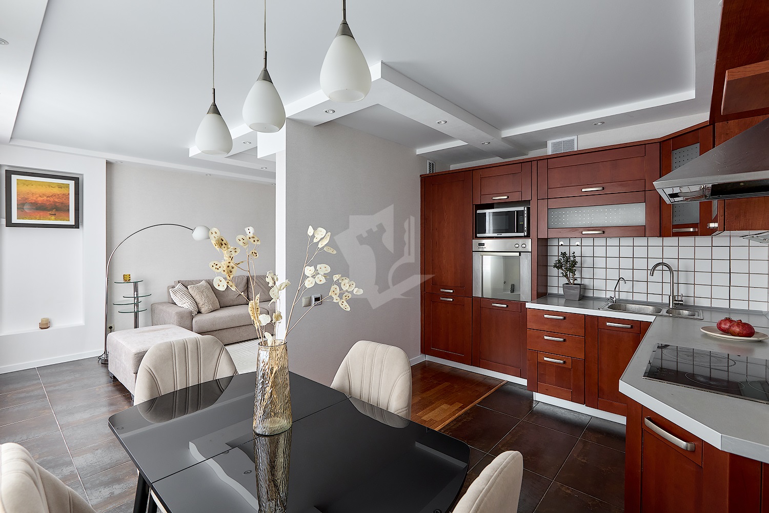 • Кухня-гостиная: техника премиум (посудомойка, духовка, варочная панель, холодильник, СВЧ), ТВ, кондиционер.