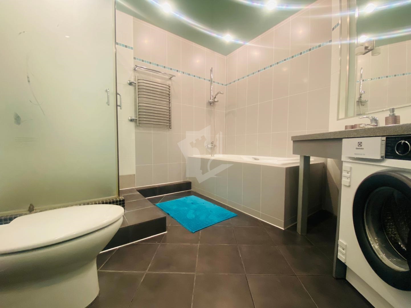 ( стиральная машина, холодильник, кондиционер, бойлер, духовой шкаф, 2 TV, посудомоечная машина), два санузла,- один с бойлером второй с кабиной душевой и ванной, полностью укомплектован мебелью. На длительный срок, договор , регистрация.