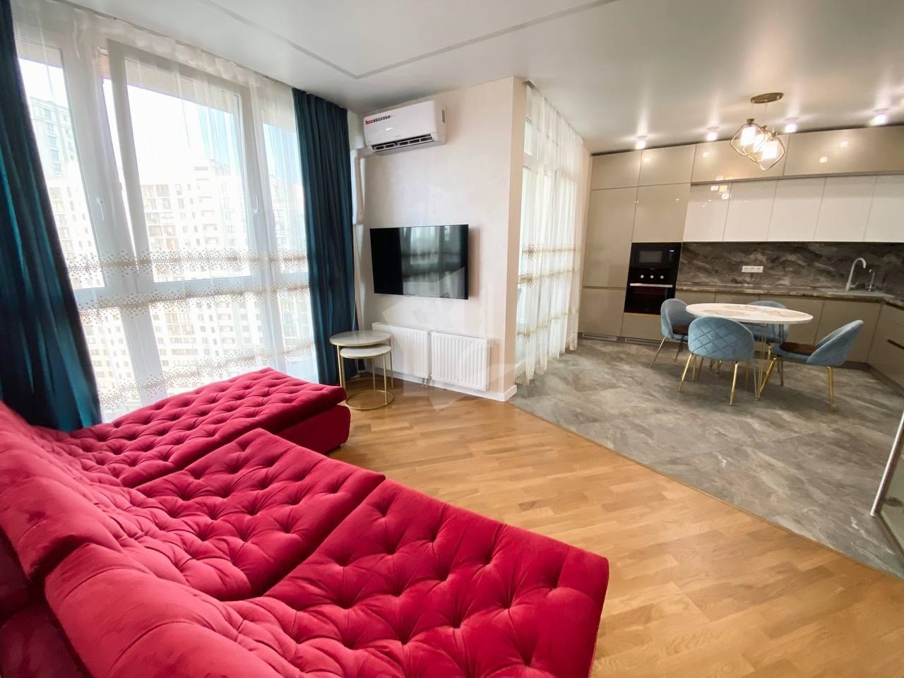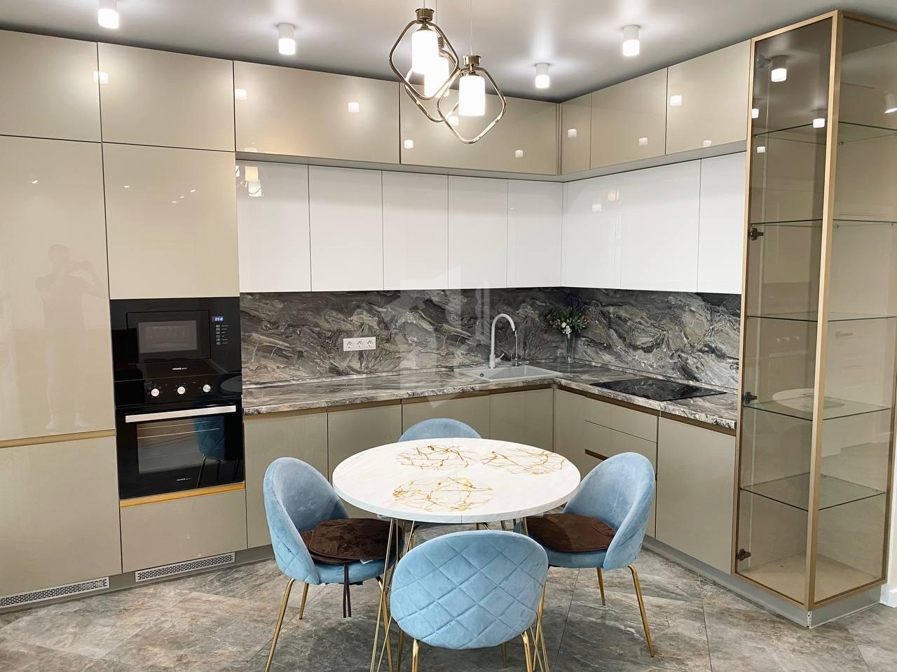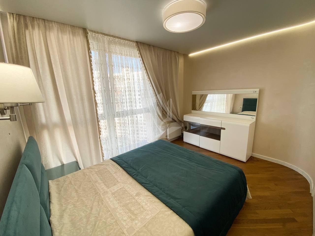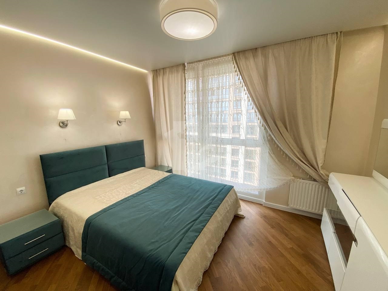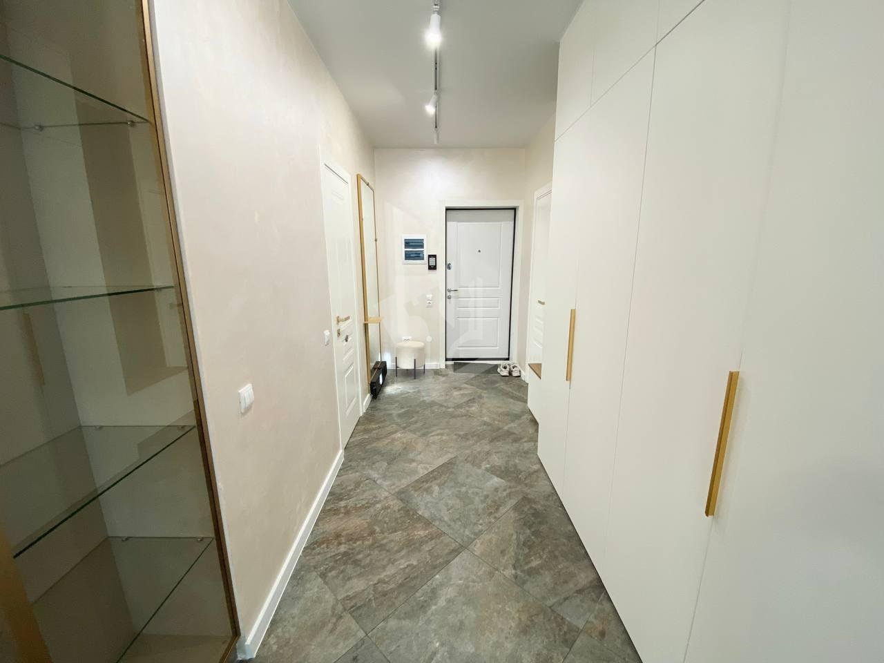 Общая площадь квартиры по СНБ более 77 м2. В квартире выполнен качественный ремонт с использованием дорогостоящих материалов. Кухня совмещена с гостиной, а также имеются две раздельные комнаты, которые оборудованы всем необходимым для комфортного проживания.