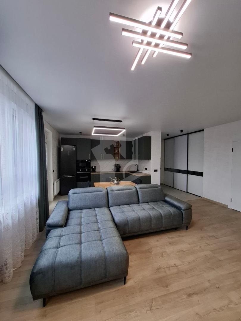 Площадь по СНБ — 83.9 м2, кухня -гостиная — 28.1 м2. Высокие потолки (2.74 м) создают ощущение простора. Застеклённая лоджия — уютное место для отдыха. Раздельный санузел. Есть вместительная гардеробная комната.