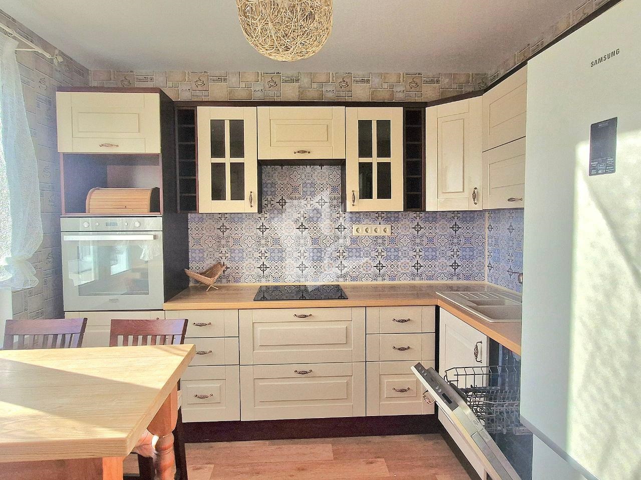 Имеются три изолированные комнаты. Просторная кухня, полностью оборудованная всей необходимой техникой: варочная панель, духовой шкаф, посудомоечная машина. Уютная ванная со стиральной машиной вертикальной загрузки — удобно и экономит место. Гардеробная комната и большой шкаф в прихожей для хранения всех необходимых вещей.