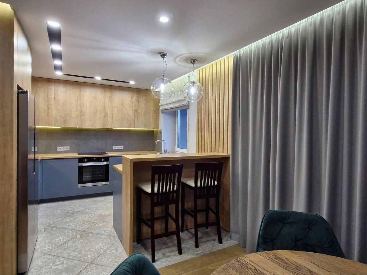 Кухня - настоящий рай для любителей кулинарии. Она оборудована большим холодильником, варочной панелью, духовым шкафом, вытяжкой, посудомоечной машиной, электро чайником.