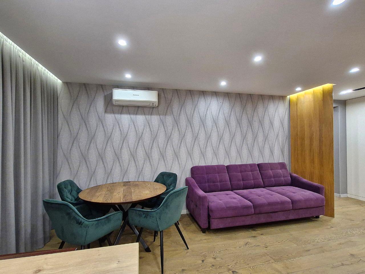По мере того, как вы входите в квартиру, вы погружаетесь в ощущение простора и уюта. Большая кухня-гостиная становится центром вашего нового дома, прекрасным местом для встреч и отдыха. В гостинной установлен кондиционер, позволяющий поддерживать приятную температуру в любое время года, имеется телевизор.