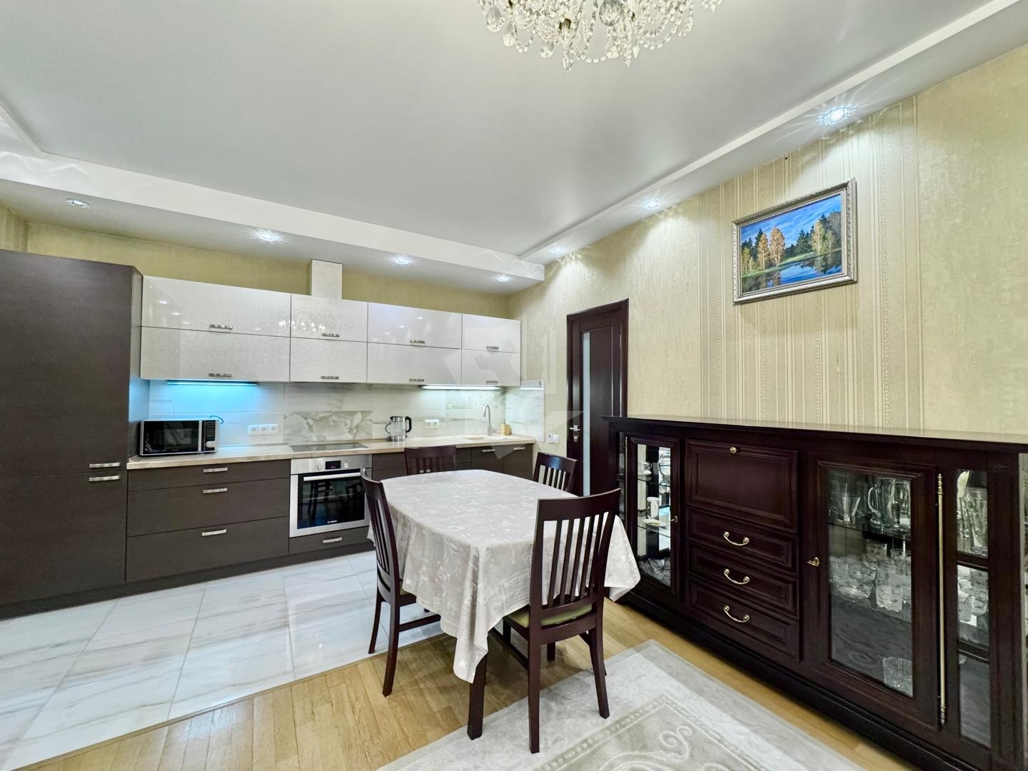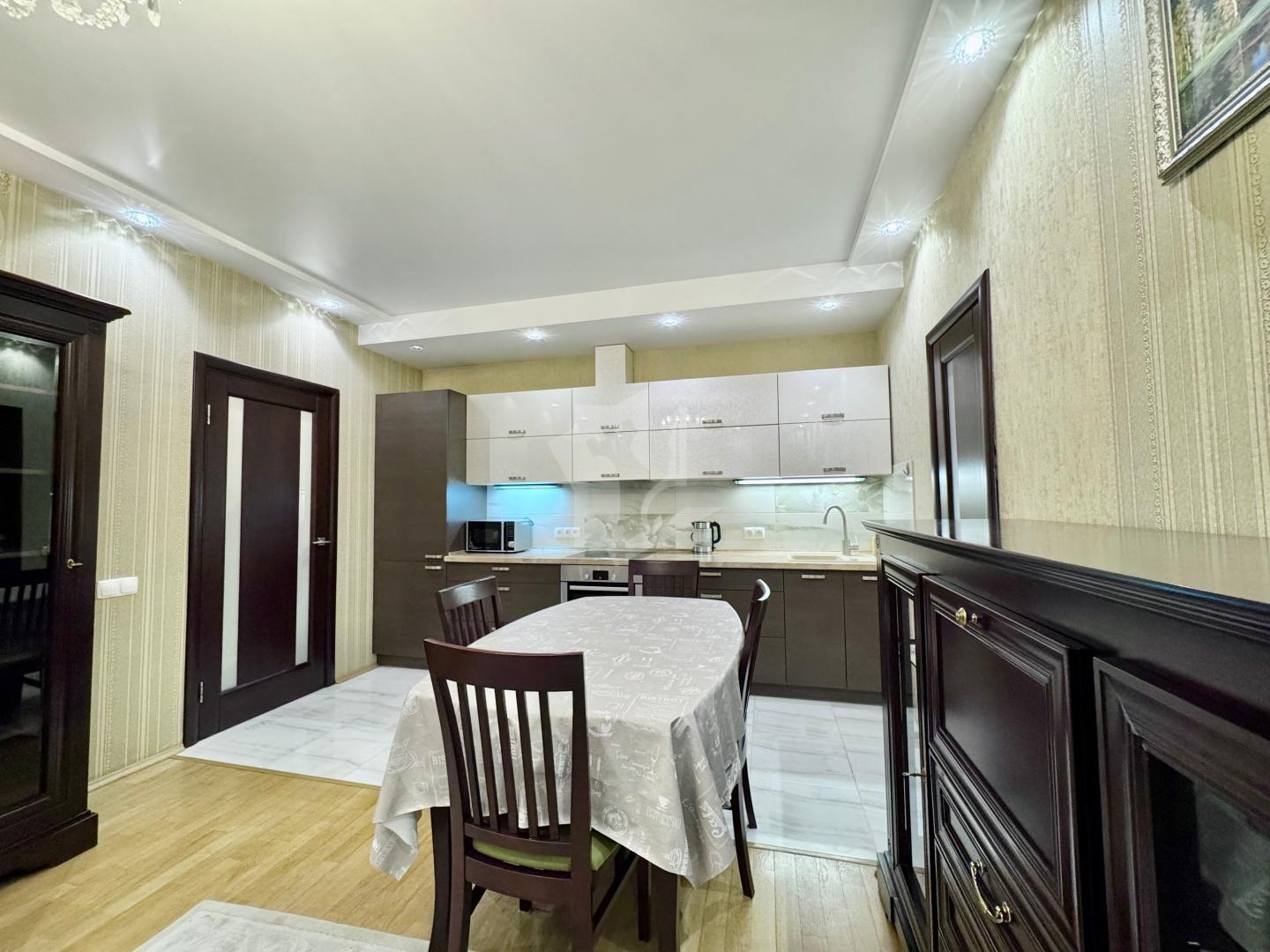 Межкомнатные двери, кухонный стол, стулья, мебель в зале - массив. В зале расположен раскладной диван Puff. Квартира полностью оборудована техникой (Телевизор SONY (55*), варочная панель Electrolux, встроенный холодильник Liebher, духовой шкаф и стиральная машина Bosch, микроволновая печь, чайник. Радиаторы с терморегуляторами. Зимой квартира теплая, летом - не жарко.