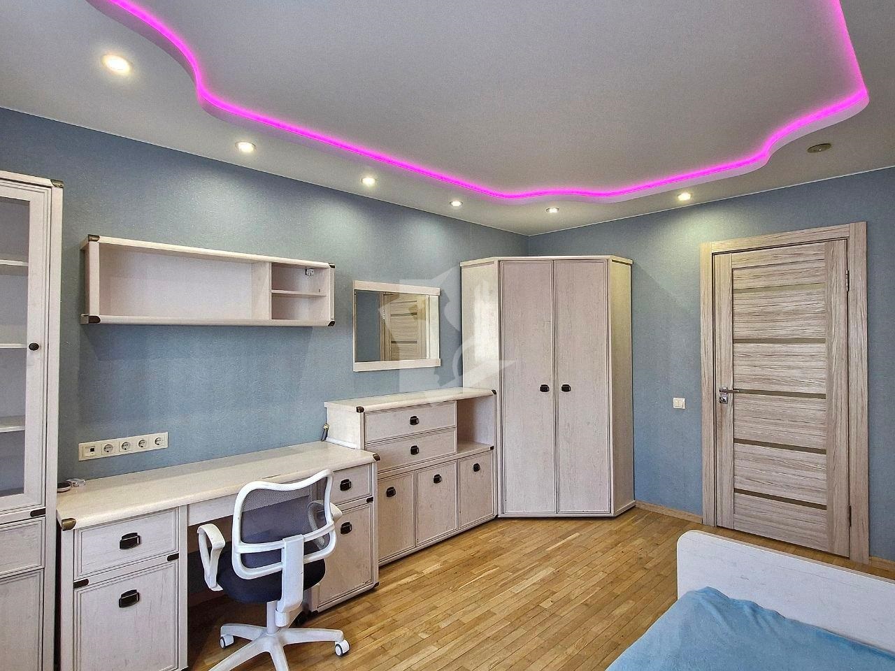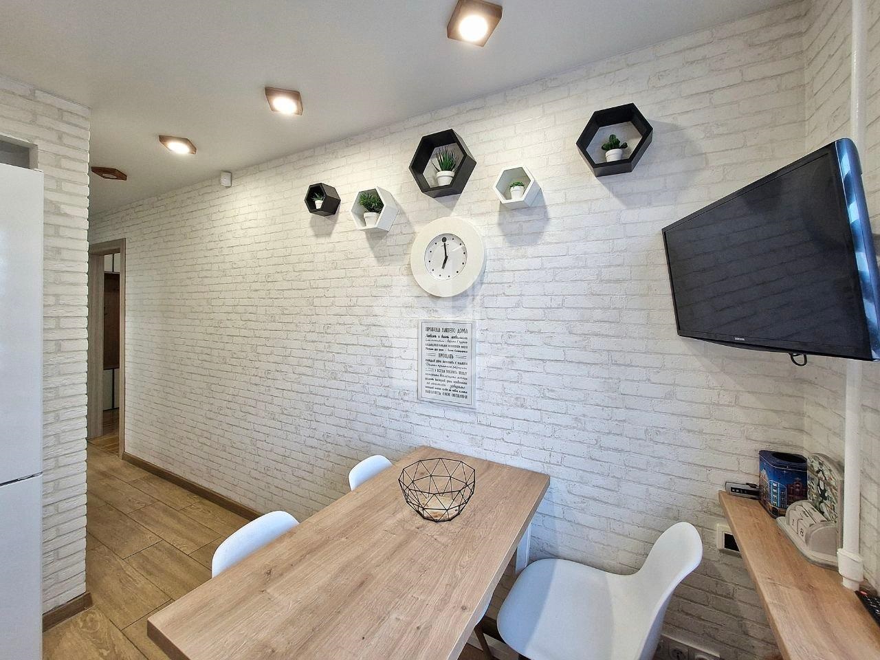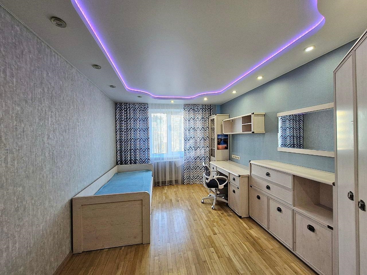 Паркет, натяжные потолки, мягкий свет — здесь действительно спокойно и комфортно.