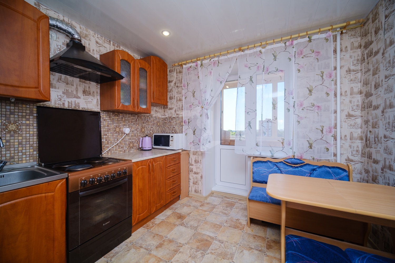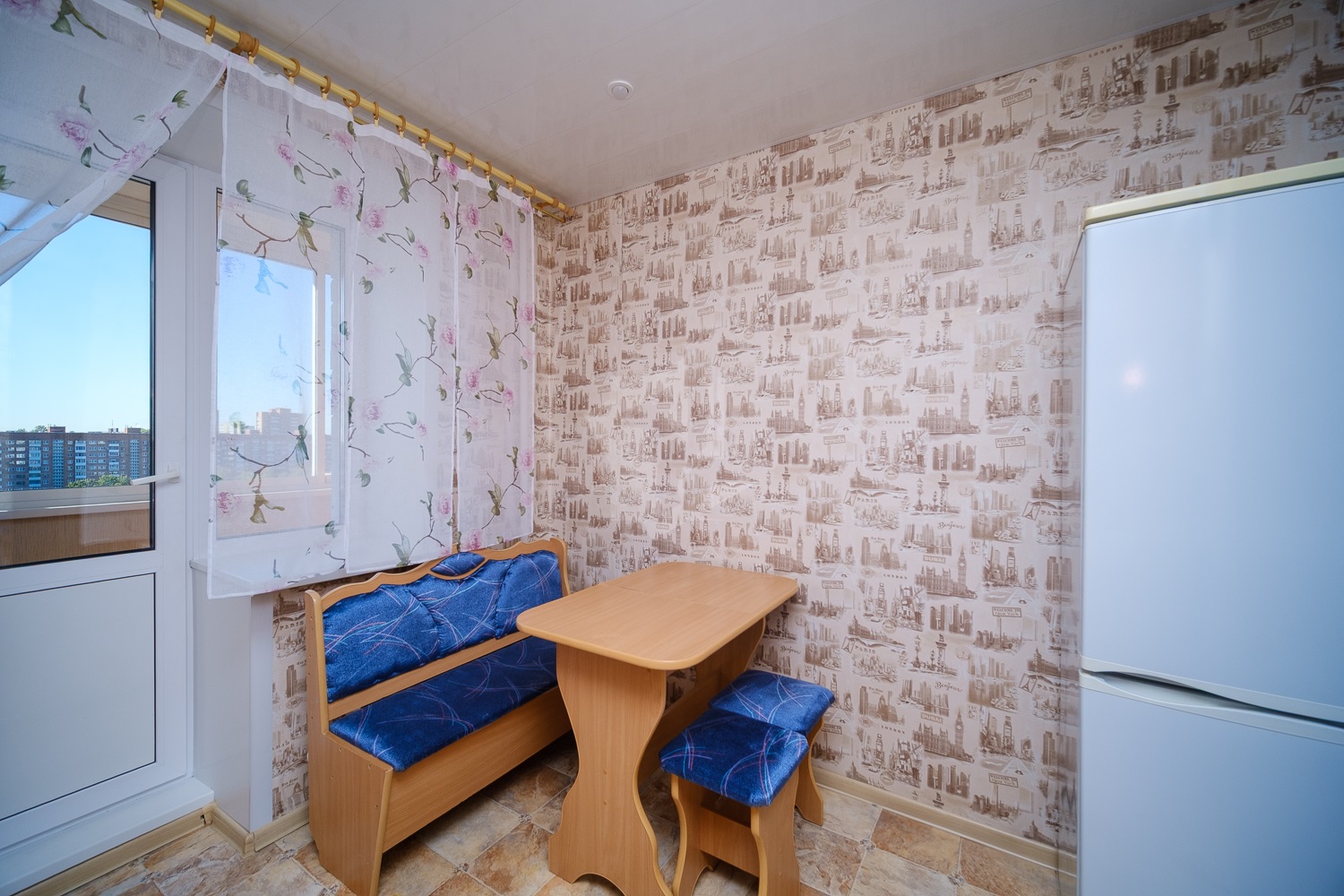 · Кухня 7.5 кв метра, уютная, также с выходом на застекленный балкон
