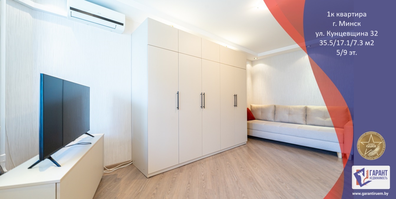 1 комн. квартира возле метро Каменная Горка по ул. Кунцевщина 32, расположена на 5-м этаже 9-и этажного дома.