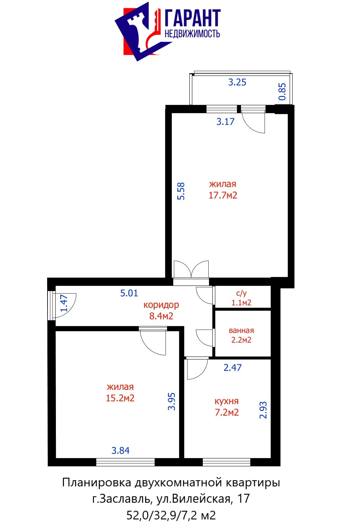 В продаже 2-комнатная квартира в тихой локации в г. Заславль.