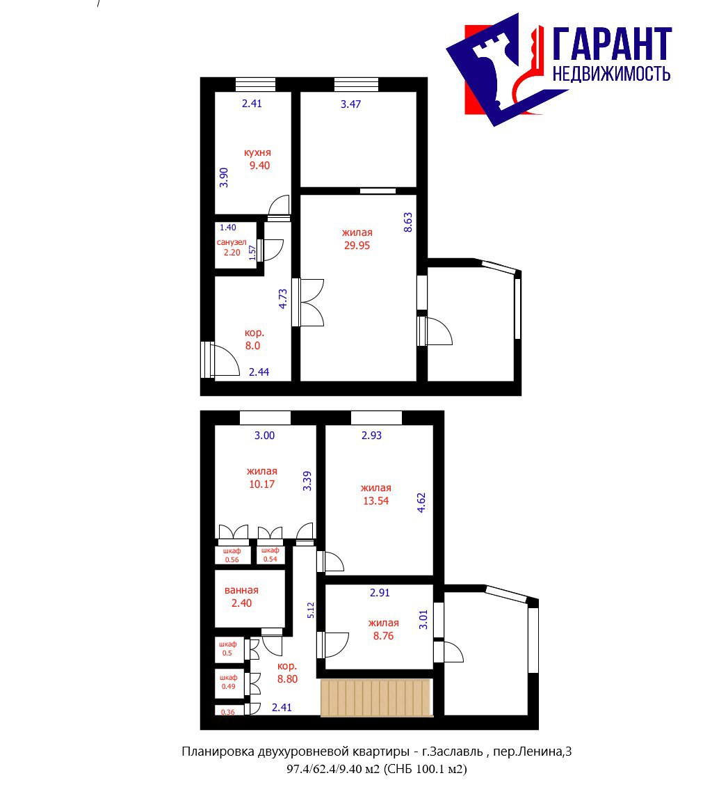2-х уровневая 4-комнатная квартира в центре г. Заславль