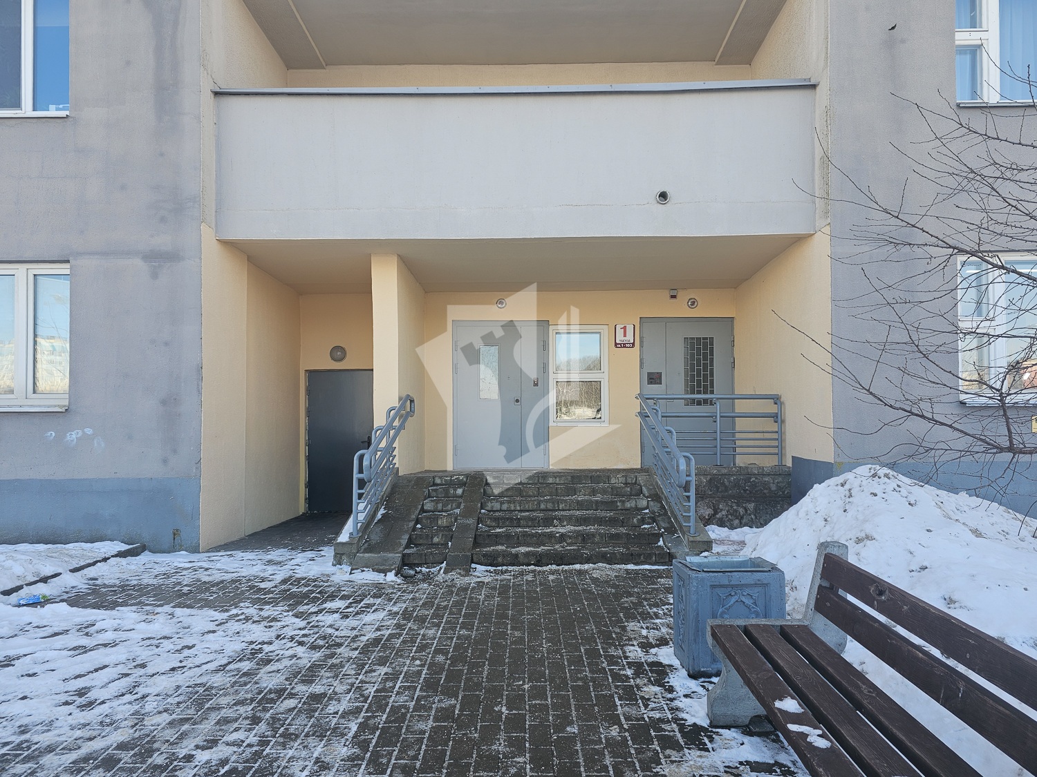 Аккуратный подъезд, дверь в лифтовой холл запирается на ключ