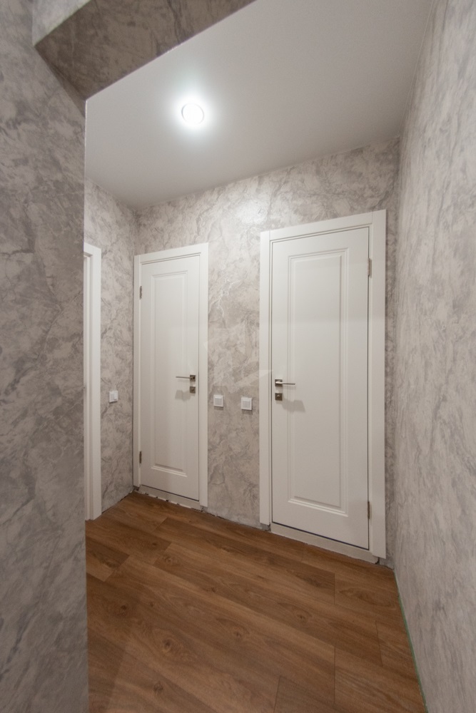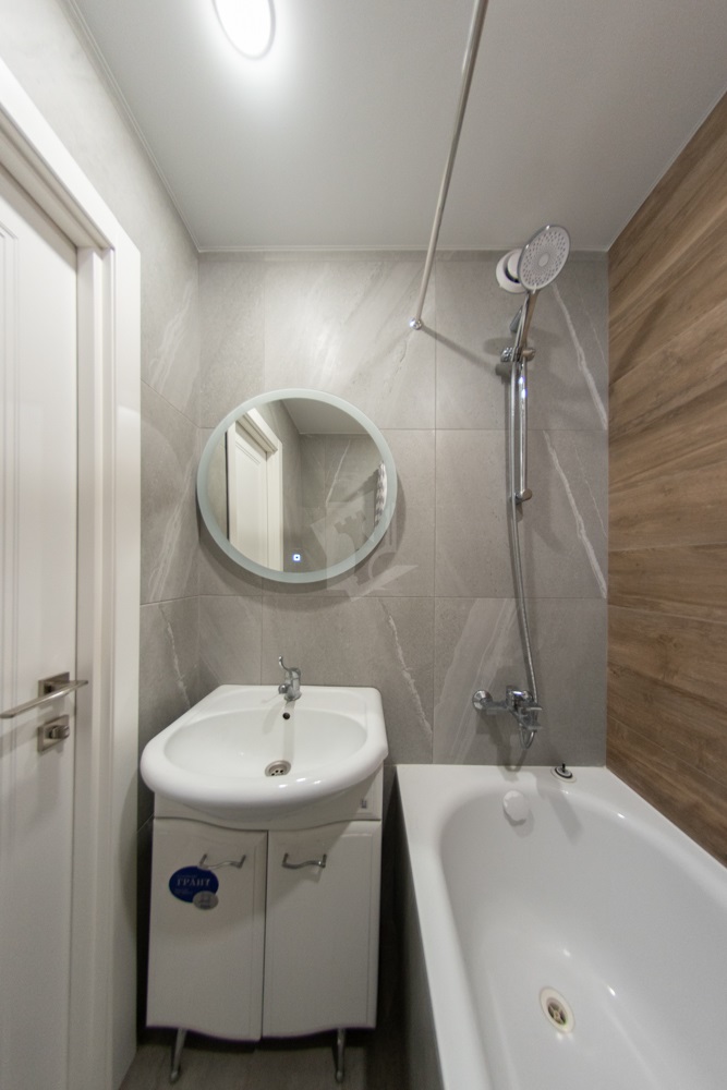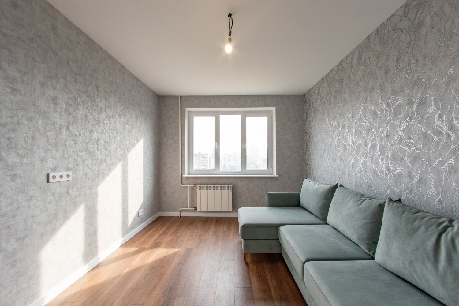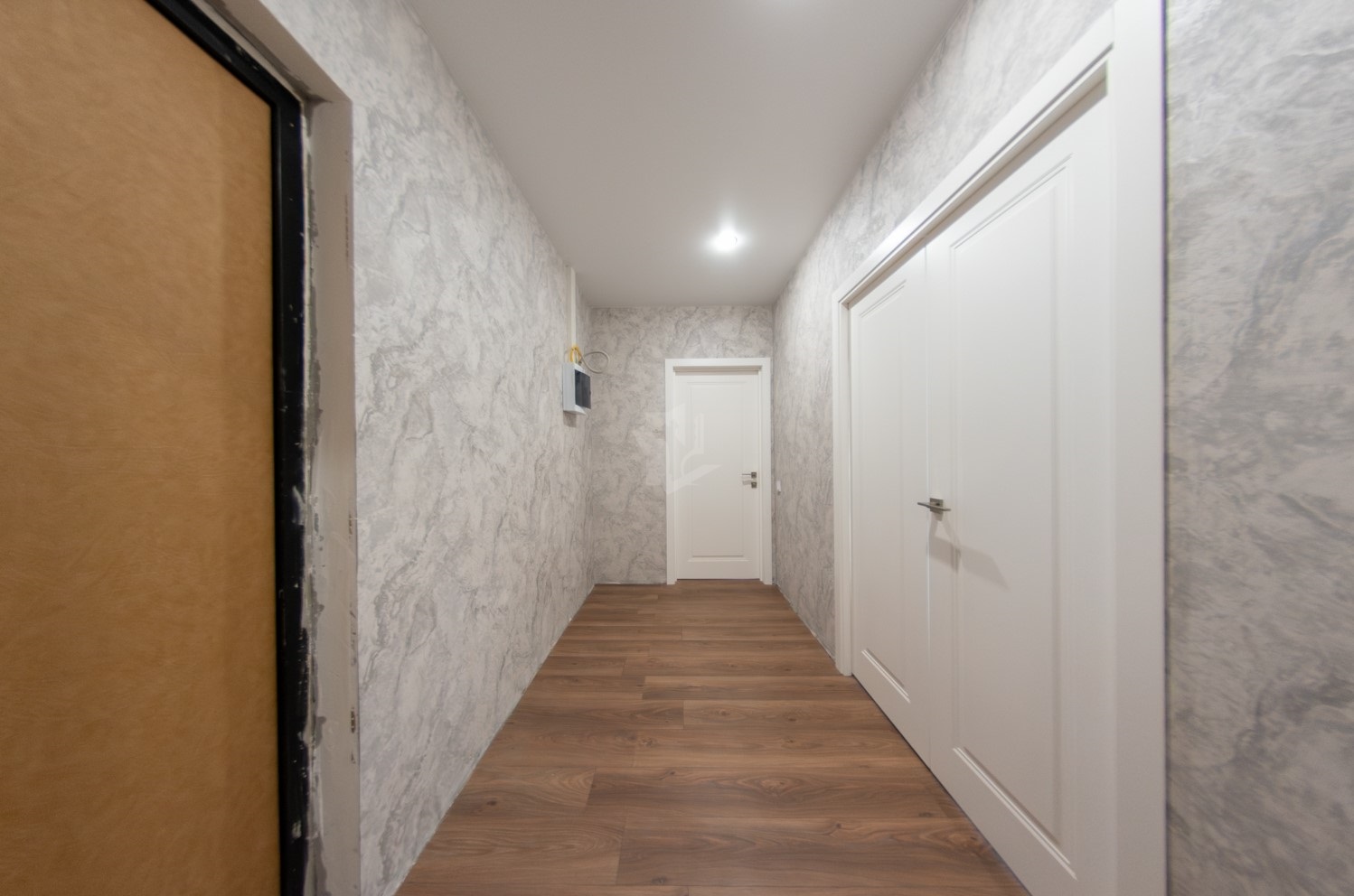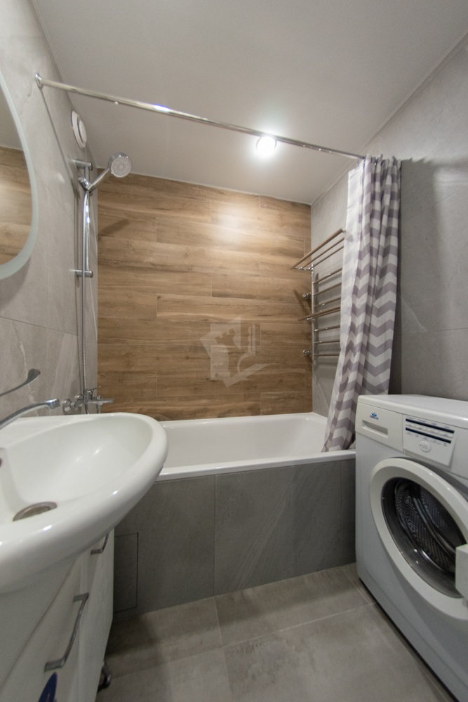В квартире выполнен ремонт: на полах уложен ламинат, ванная и туалет – плитка, заменена электропроводка, трубы и стояки, установлены окна ПВХ, железная входная дверь.