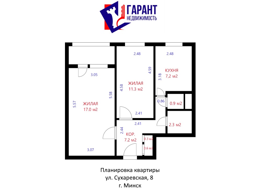 Продаётся просторная двухкомнатная квартира в Минске на ул. Сухаревская, 8