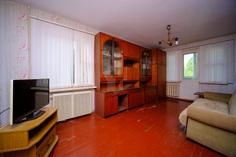 - В квартире - аккуратный ремонт. На полу ламинат, стены - обои, железная входная дверь, пластиковые стеклопакеты, лоджия застеклена, обшита вагонкой. В квартире частично остаётся мебель и бытовая техника.