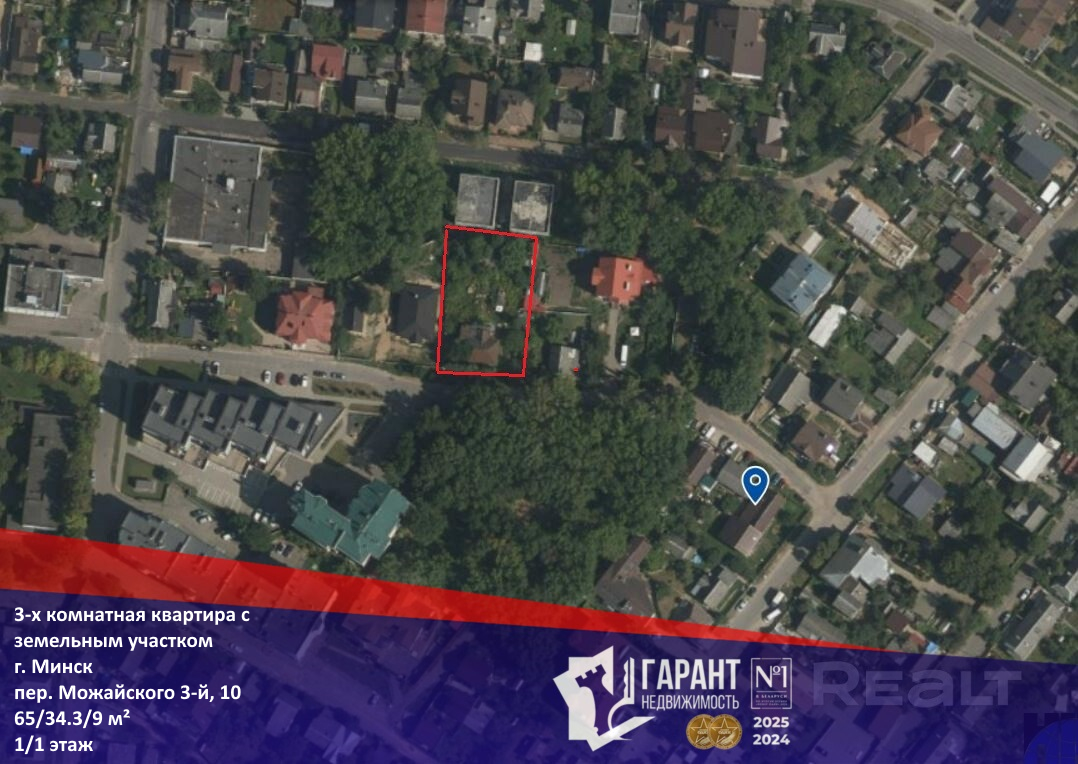 К квартире относится полностью огороженный земельный участок площадью 13,43 соток, который находится в частной собственности. Участок ровный, правильной прямоугольной формы.