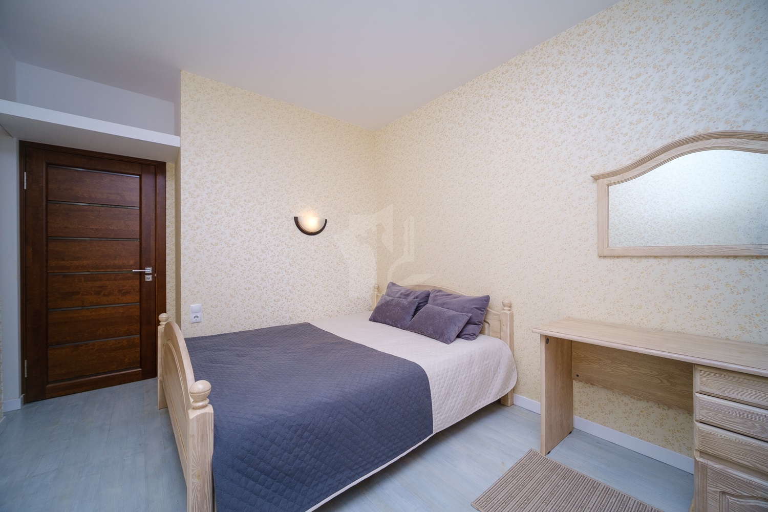 К квартире относится земельный участок площадью 7,0 соток, на котором есть игровая зона для детей и можно организовать уютную зону барбекю. Сам дом обнесен качественным забором и расположен всего в 8 км. от Минска.