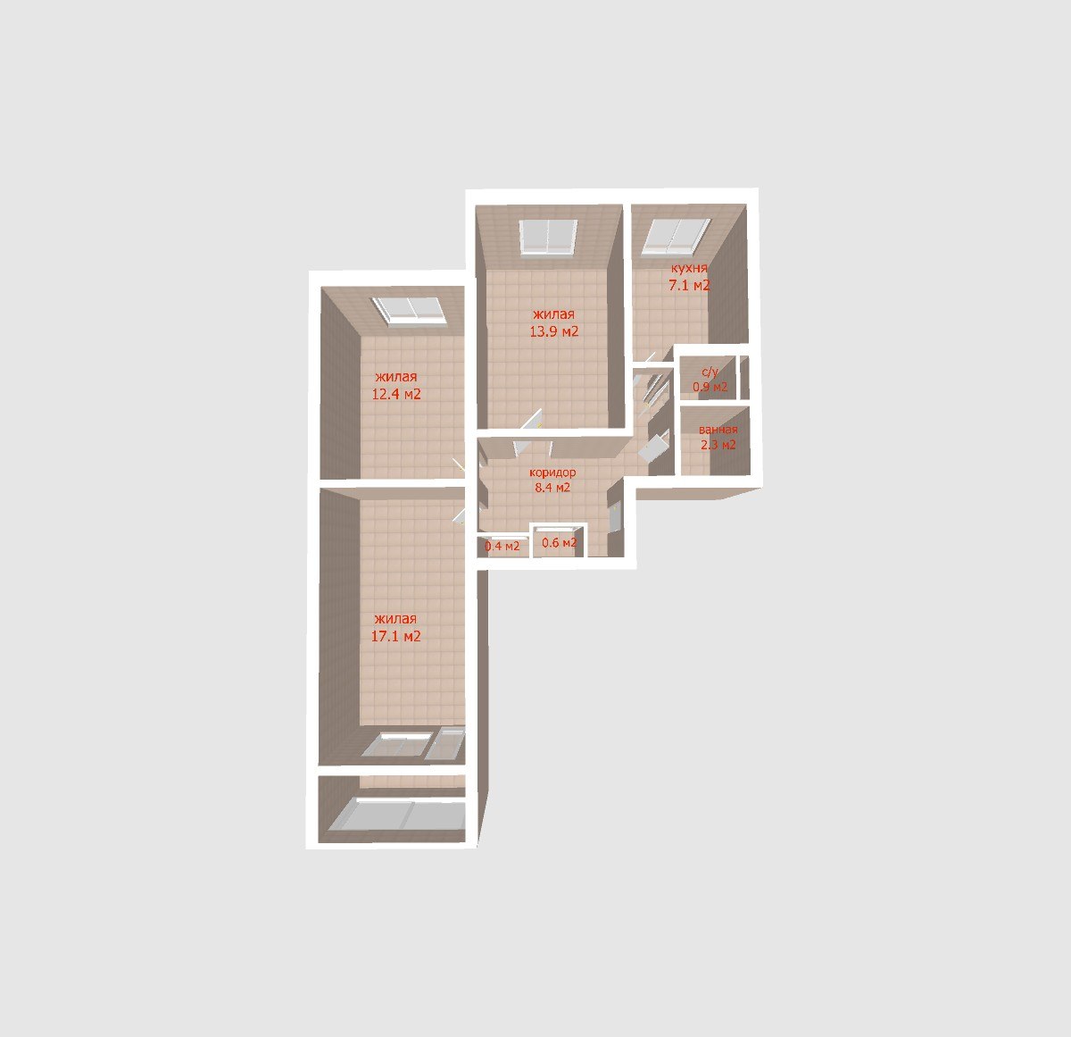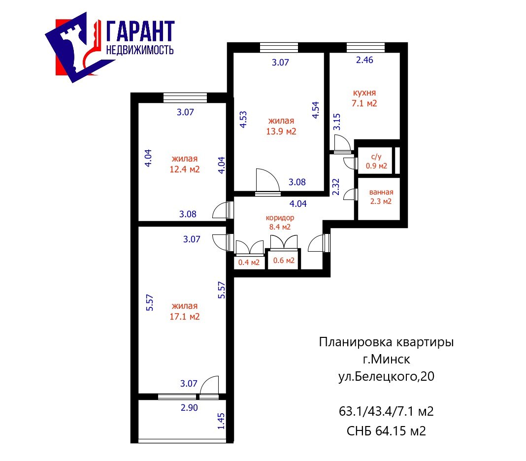 Общая площадь 63.1 кв.м.