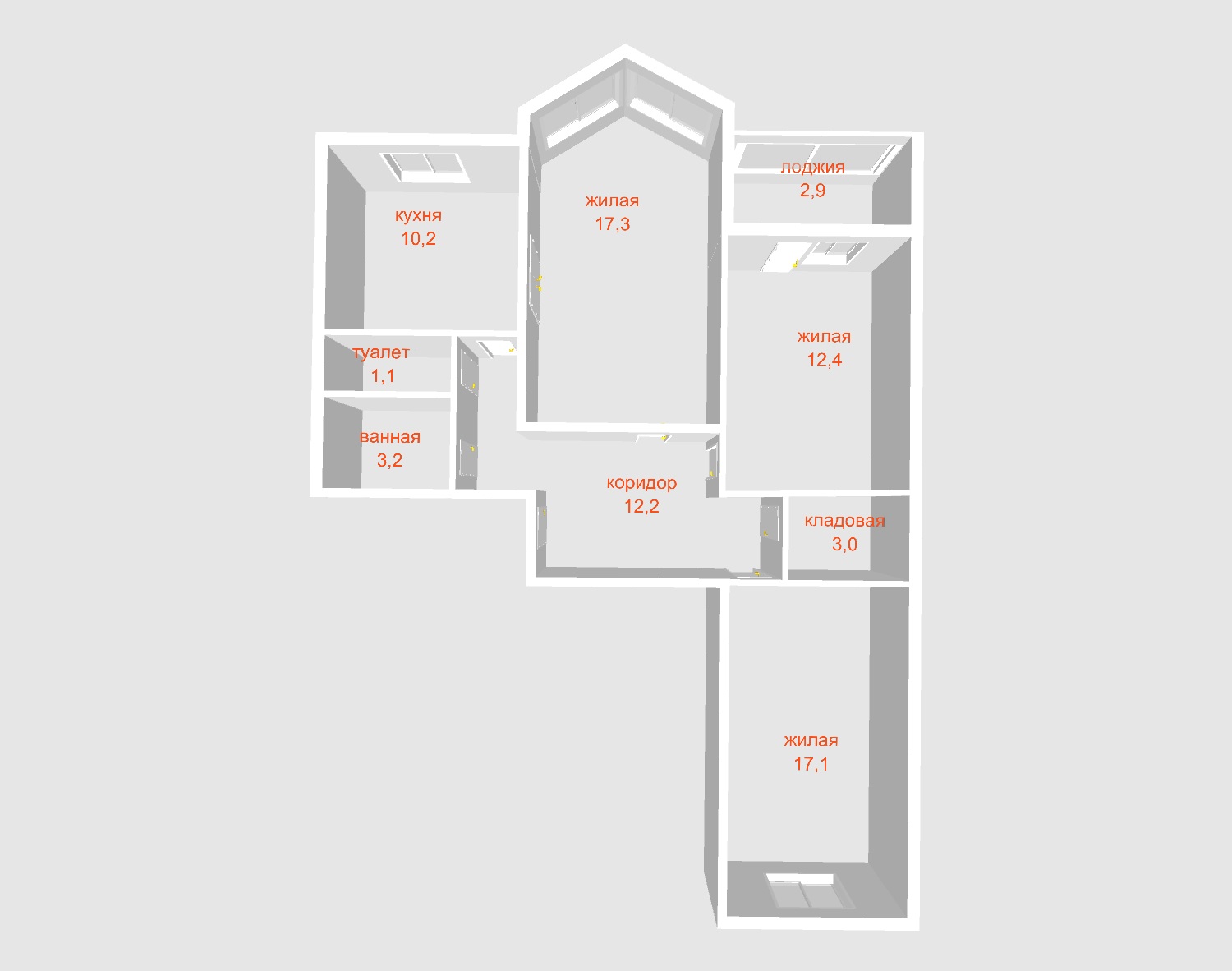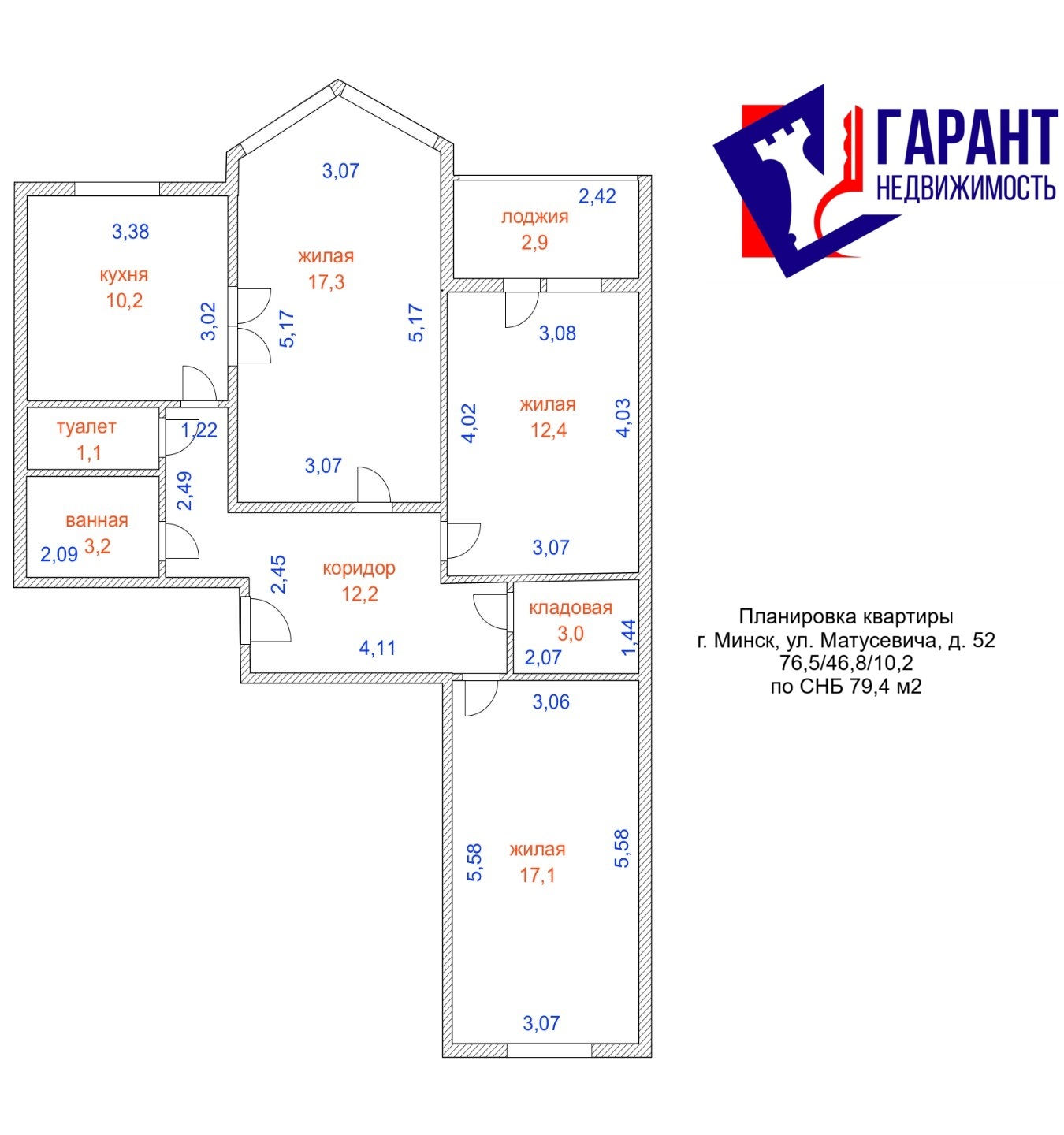 Общая площадь 76.5 кв.м.