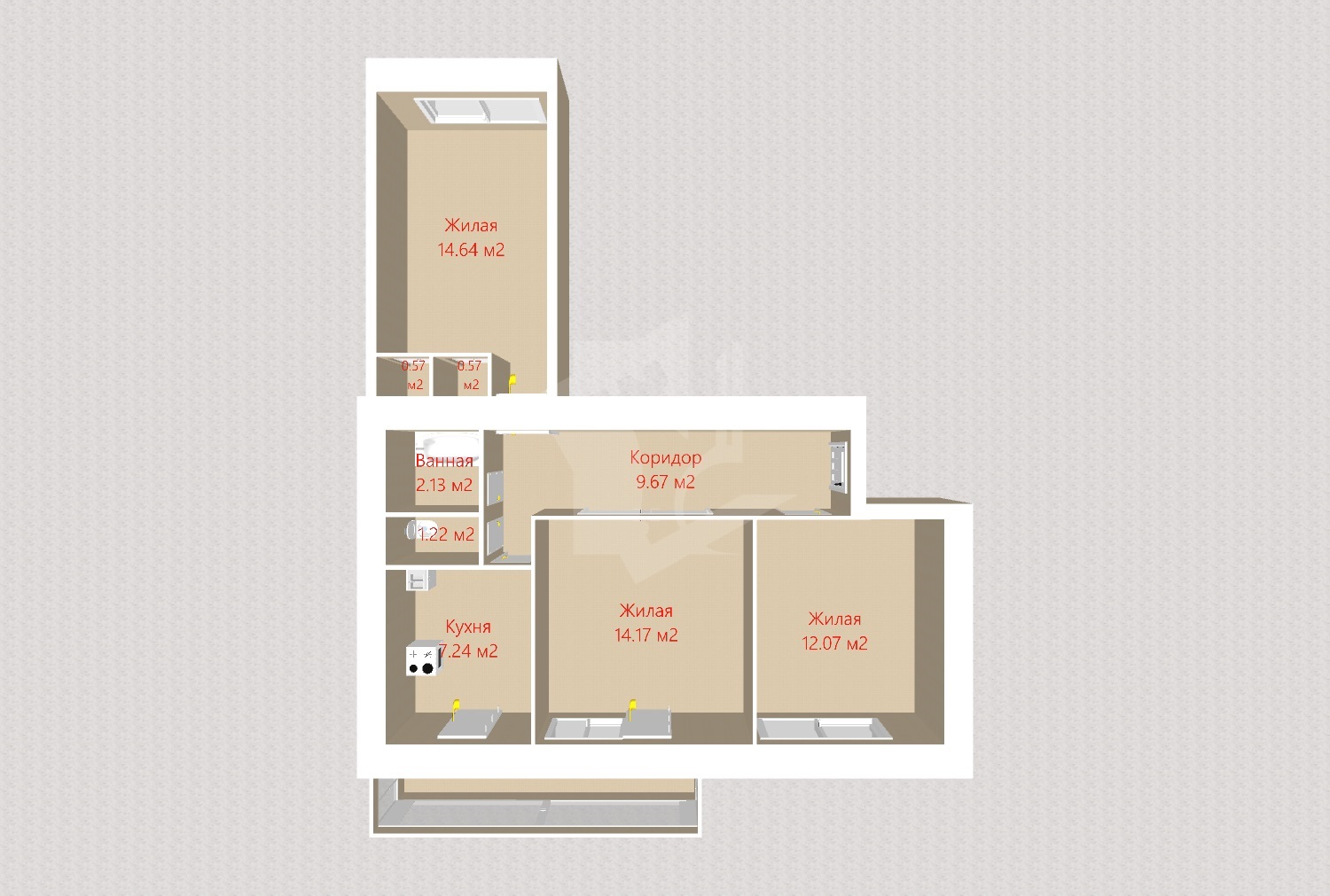 Квартира рациональной планировки с 3 изолированными комнатами и просторным балконом