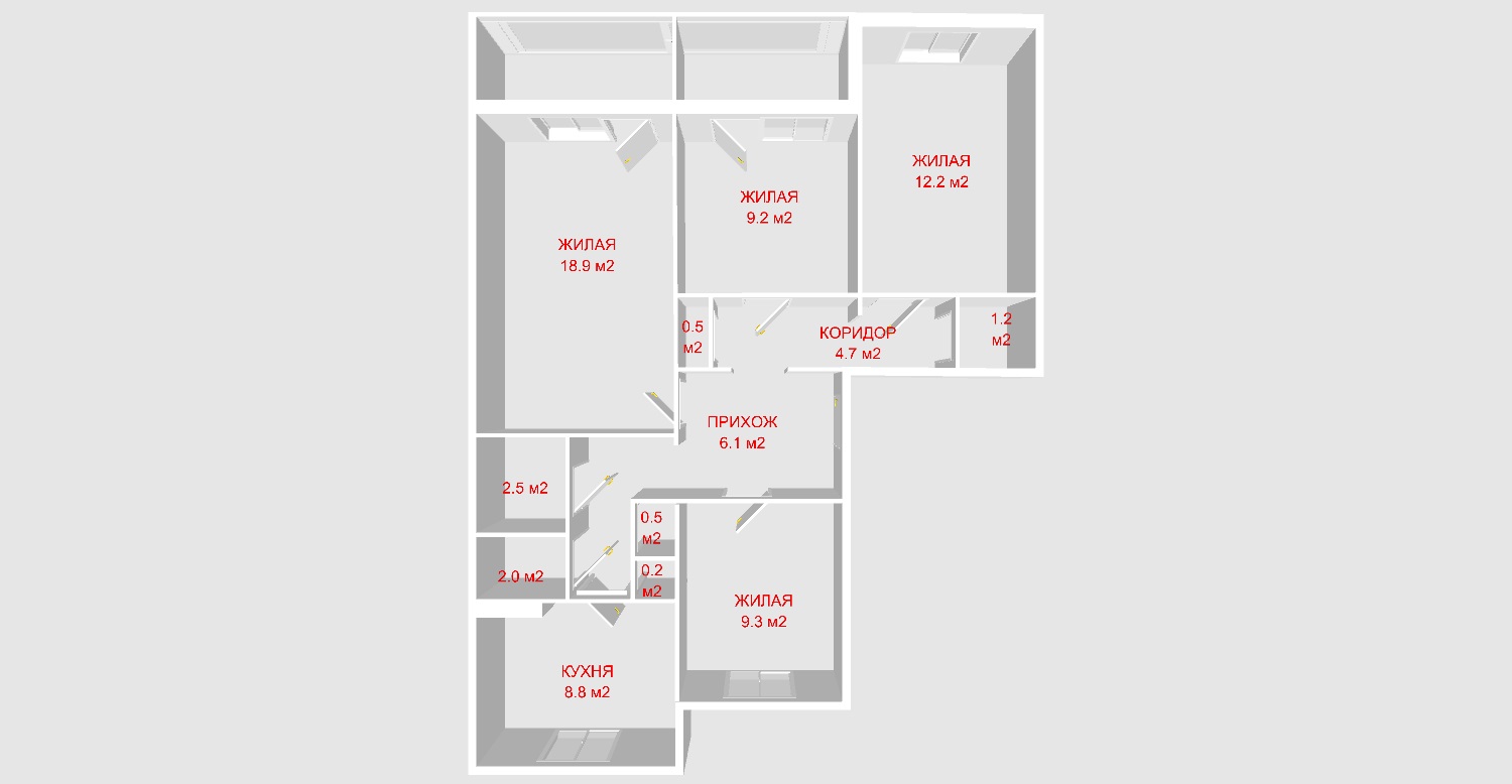 Третий этаж трехэтажного дома. Две квартиры на площадке. Все комнаты раздельные (19, 12, две по 9м2), высокие (2.63 м) потолки, окна выходят на две стороны, две просторных застекленных лоджии, девятиметровая кухня