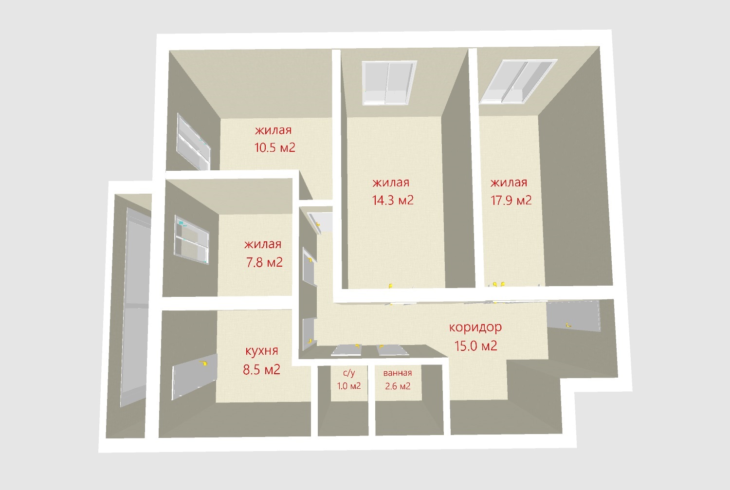 3 раздельные комнаты, гостиная, кухня с большой застекленной лоджией, где предусмотрены места отдыха и хранения.