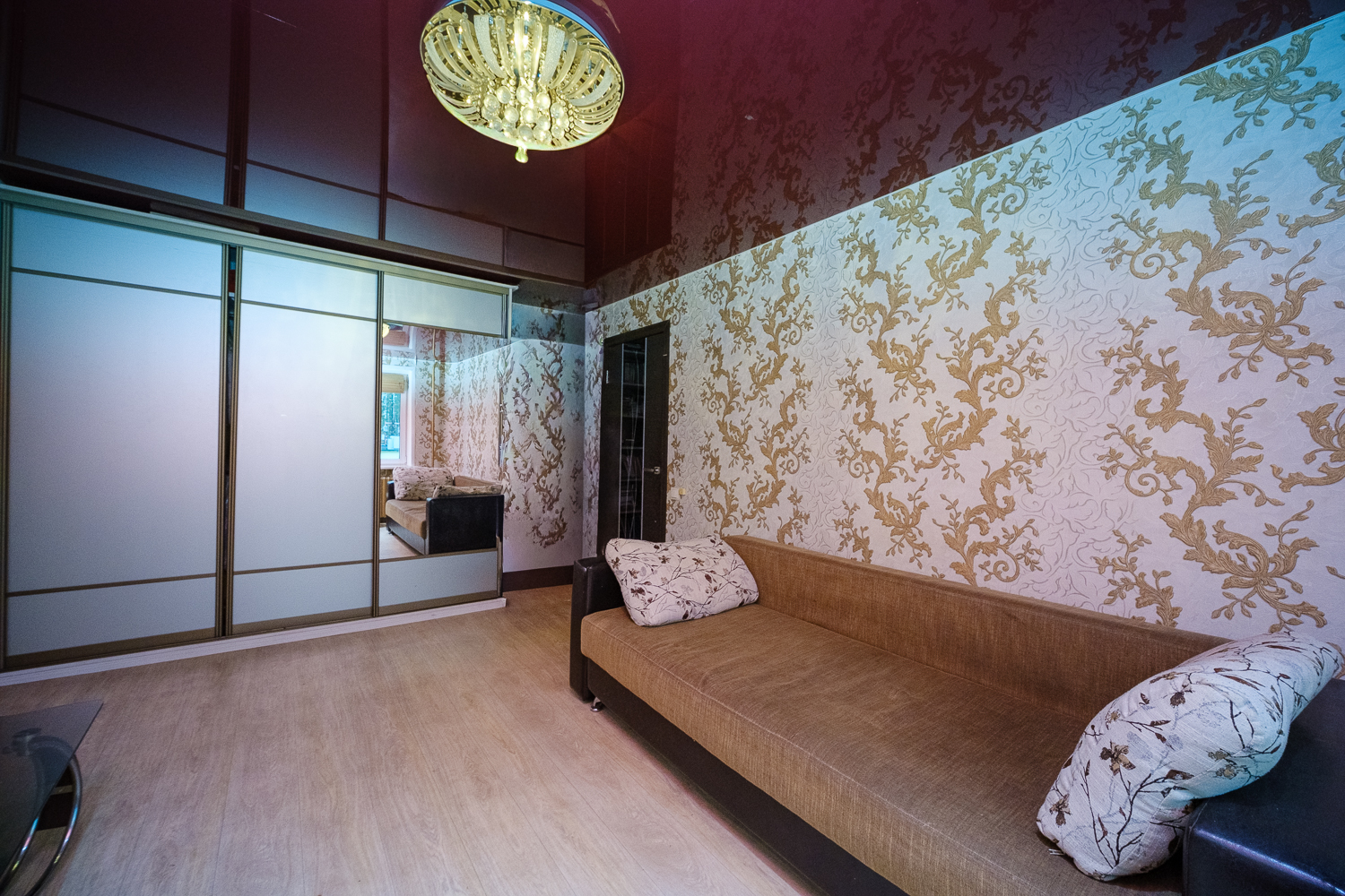 Потолки натяжные, окна ПВХ, лоджия застеклена.