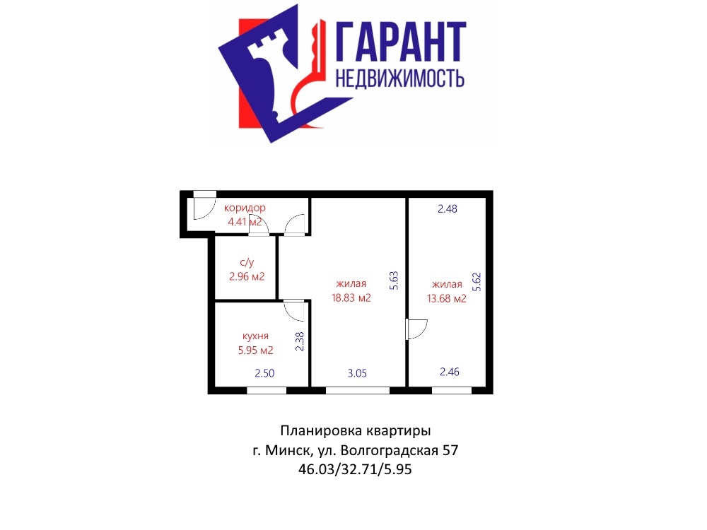 Предлагаем двухкомнатную квартиру площадью 46 квадратных метров, расположенная рядом с метро "Московская" на улице Волгоградской.