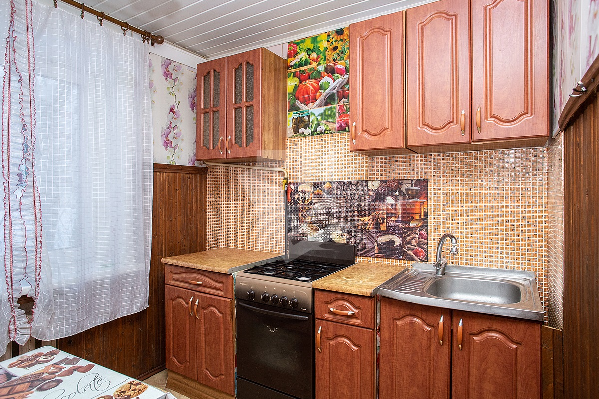 Интерьер требует ремонта, однако квартира готова к проживанию, хотя обстановка и дизайн устарели.