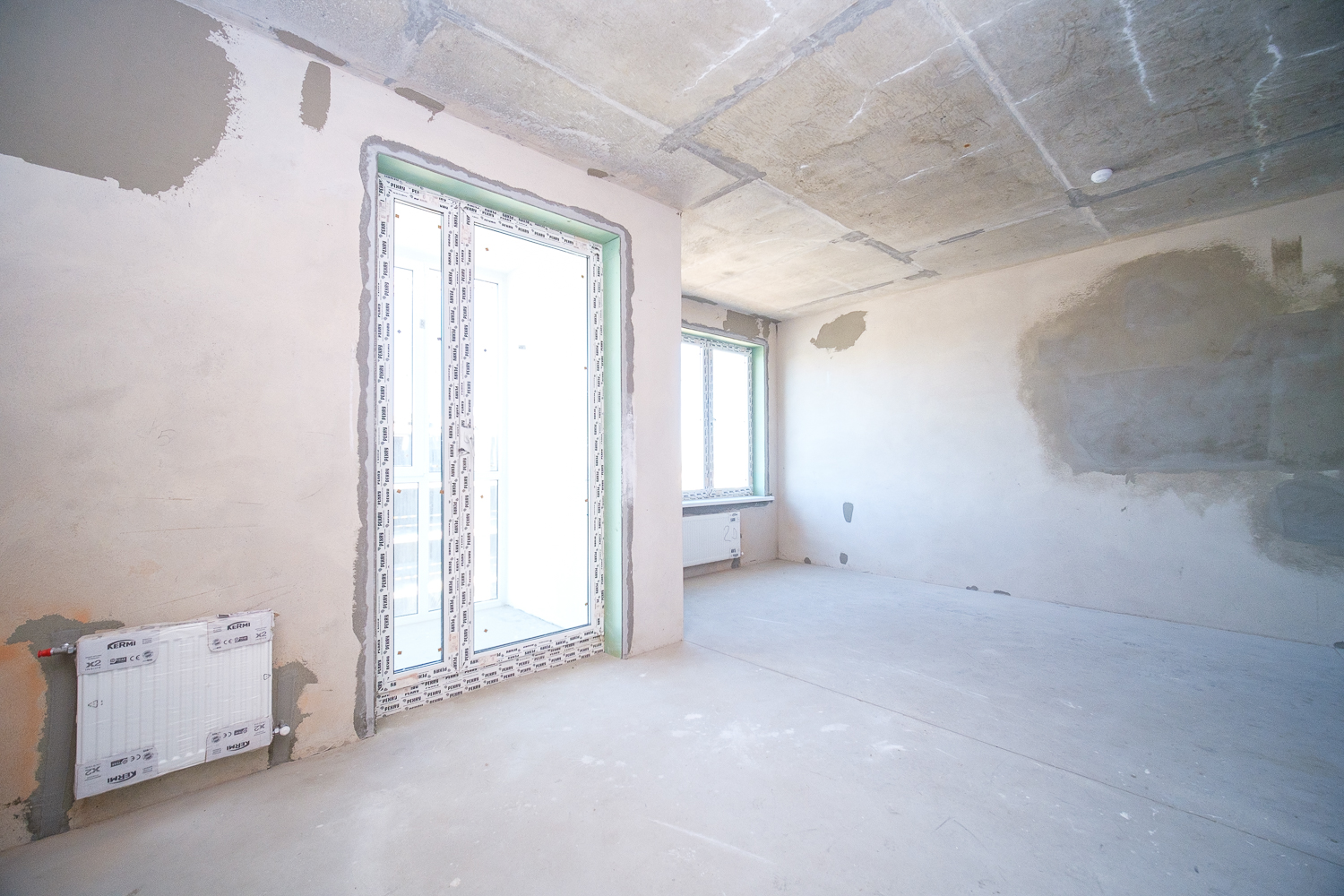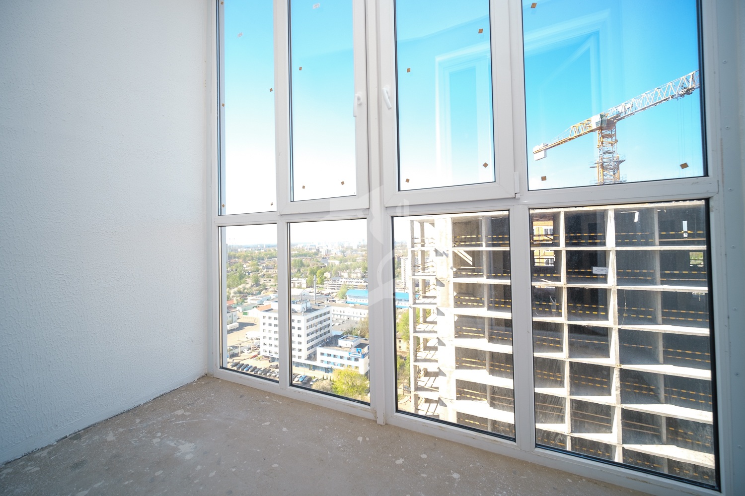 Квартира занимает два этажа - 19-й и 20-й и полностью готова к чистовой отделке. Окна ПВХ с двойными стеклопакетами выходят на юго-запад. Лоджии благоустроены и застеклены (остекление на всю высоту). Высота потолков – 2,7- первый уровень, 2,9 – второй уровень.